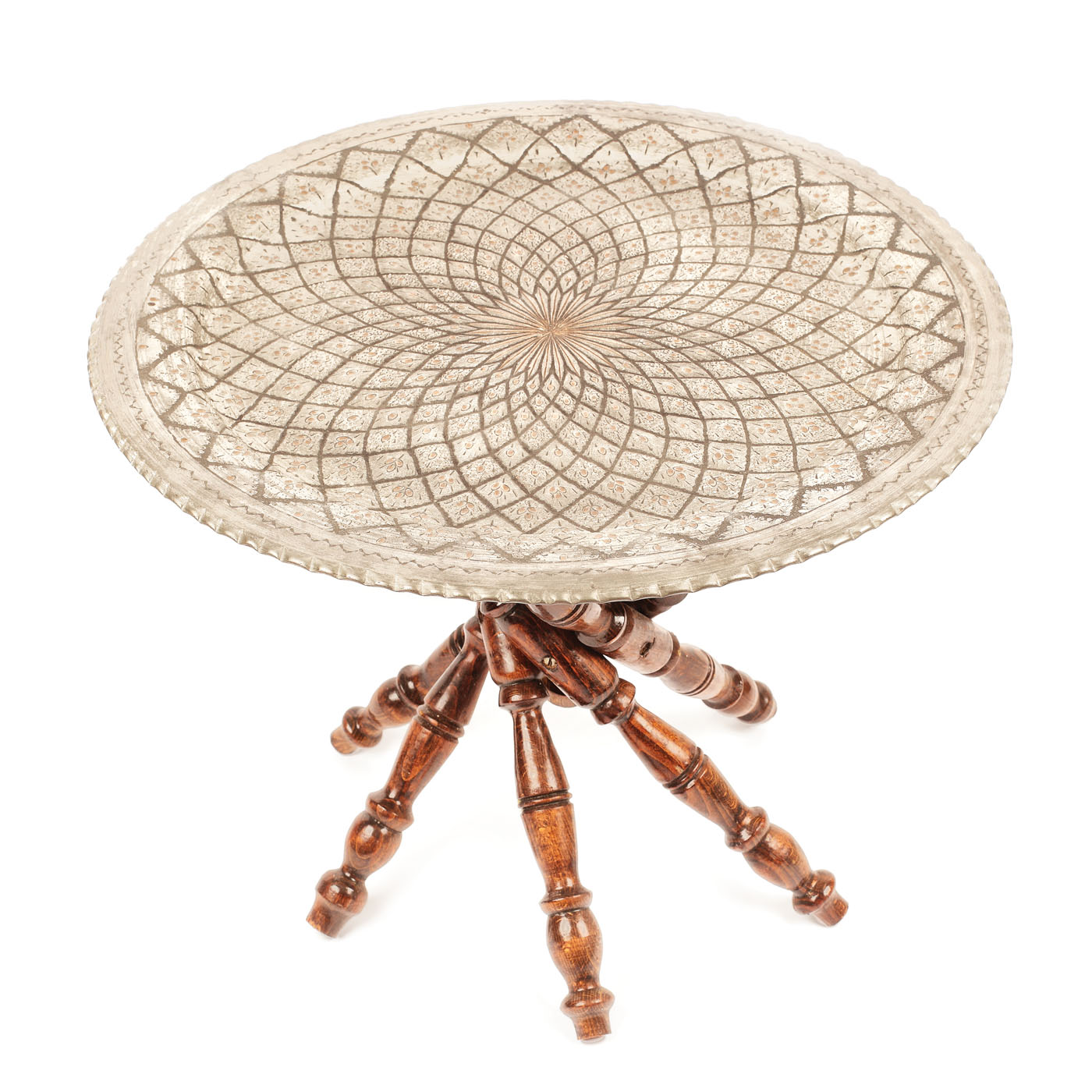 120. Masă cu blat circular din cupru, ornată cu arabescuri, pentru servit ceaiul, Persia, sec. XX