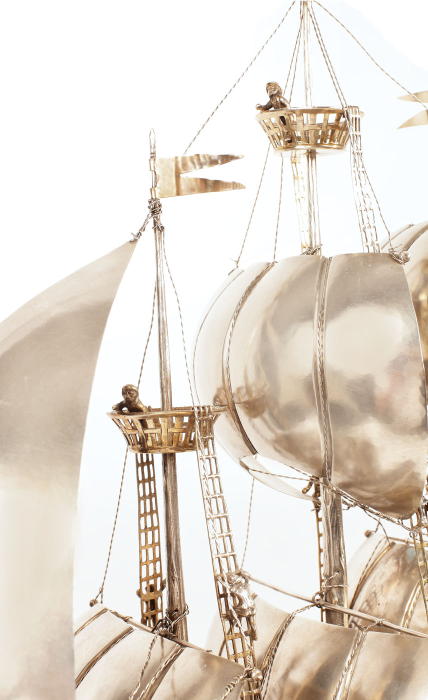 133. Monumentală corabie de explorator, din argint Hanau, cca. 1900