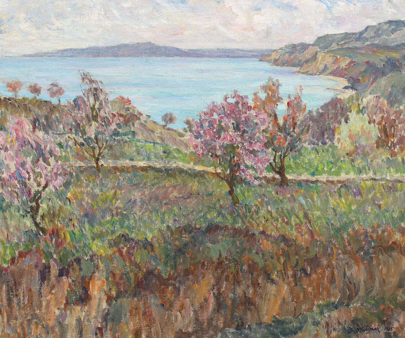 Samuel Mützner, în corpul călătoriilor realizate pe parcursul întregii cariere, a reușit să ofere Balcicului un loc însemnat în imaginarul creației sale. Perioada interbelică este evident cea în care orașul din extremul sud-estic al României devenea și pentru soții Mutzner o destinație ideală, unde de altfel aveau și o casă de vară. Fiind unul dintre vârfurile impresionismului românesc, Mutzner era conectat la atmosfera tipică Balcicului, fapt ușor de probat prin recurența peisagistică locală. În “Primăvara la Balcic” artistul a surprins nota definitorie a Balcicului, respectiv peisajul arid ce se rostogolește peste dealurile inundate de lumină. Compoziţia rămâne fidelă soluţiilor cromatice ale impresionismului, cerute de altfel şi de mediul natural de la Balcic, în care lumina joacă un rol important în structurarea întregului, fiind totodată şi un mijloc de construire a planurilor. Jocul scenic este utilizat de Mutzner cu ajutorul unei perspective adecvate planului figurativ, dar și prin tonurile ce alternează între fundalul înecat în lumină și prim-planul nuanțat. Opera de față poate fi integrată ușor într-o porțiune estetică anume – alături de “Balcic primăvara” (M.N.A.R.), “Peisaj din Dobrogea” (Muzeul Zambaccian) sau “Timp ploios la Balcic” (M.N.A.R.) (vezi “Samuel Mutzner”, Viorica Andreescu, Ed. Meridiane, București, 1974) – în care putem remarca reformulările picturale pe care pictorul le execută în cadrul discuției formă – culoare. (I.P.)