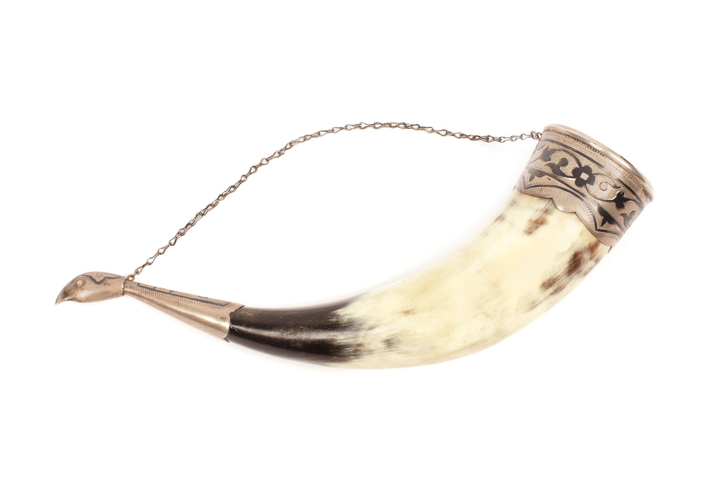 138. Recipient din corn, cu monturi din argint decorat în niello, 1950