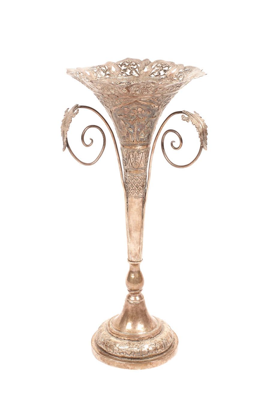 144. Solifloră din argint, cu decor arabesque și palmete au repoussé, sec. XX