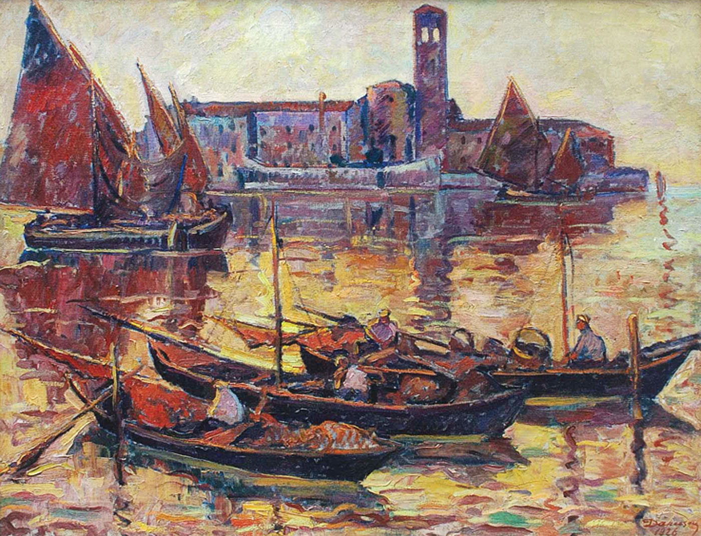 Dărăscu ajunge în deceniul al treilea al secolului trecut să fie recunoscut drept unul dintre cei mai reprezentativi artişti în manieră impresionistă autohtoni. Drumul parcurs de pictor a produs totuşi altă apariţie a sa în întregul tablou plastic românesc. Desigur că secretul din spatele dezvoltării artistice se regăseşte în acumularea succesivă a diverselor influenţe, căpătate atât în timpul studiilor cât şi ulterior. Începând cu anii ’20, Dărăscu reuşeşte să îşi adapteze stilul la necesităţile rezolvării problemelor ce ţin de construirea volumelor. Culoarea guvernează întreaga compoziţie, iar suprafeţele sunt coordonate exclusiv de volumele pictate. Însă complexul cromatic dezvoltat este şi el supus procesului de epurare. Culoarea îşi pierde din consistenţa pură cu care era folosită în primele perioade, iar contrastul devine unealta unei game cromatice aprofundate. Paleta se esenţializează, până în punctul în care putem observa în peisajele lui Dărăscu, în special în cele din perioada 1926-1928, o bivalenţă cromatică, modelată în jurul galbenului şi roşului. Desigur că întregul complex cromatic este subordonat tonurilor de albastru, mai ales în cazul Veneţiilor realizate în această perioadă, ştiindu-se faptul că peisajele lui Dărăscu sunt mereu coordonate de consistenţa apei. Amintind de picturile realizate la mijlocul sec XIX de către J.M.W. Turner în care pictorul britanic picta tot din depărtare cupolele celebrei catedrale, Dărăscu picta în maniera-i atât de specifică una dintre compozițiile definitorii ale ciclului dedicat Veneției.