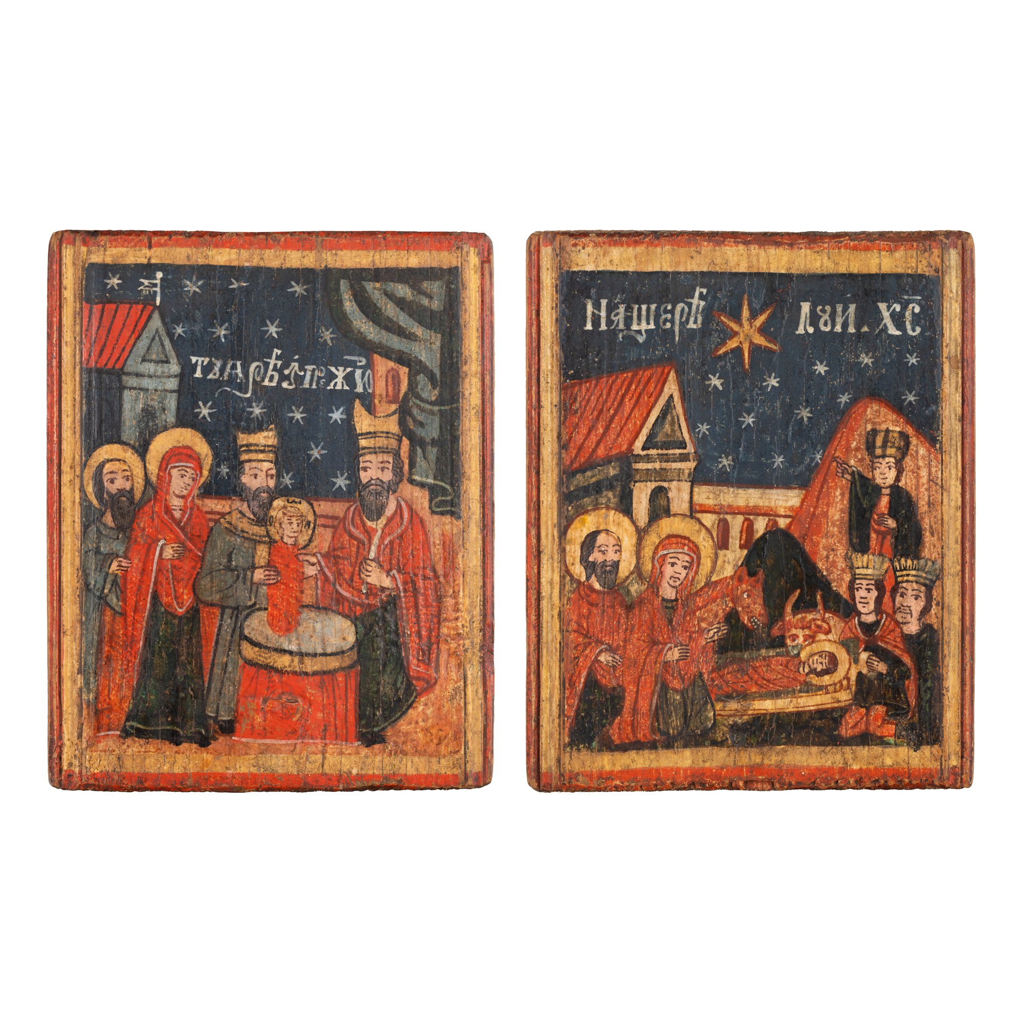 59. Icoană dublă prăznicar, ”Nașterea Domnului” și ”Întâmpinarea Domnului”, școală transilvăneană, sfârșitul sec. XVIII-începutul sec. XIX