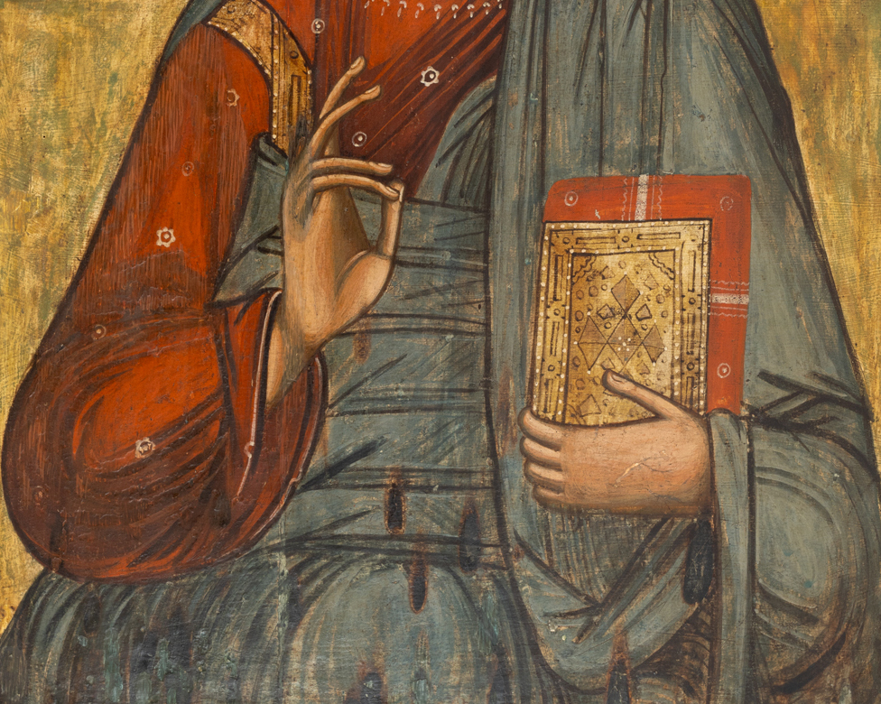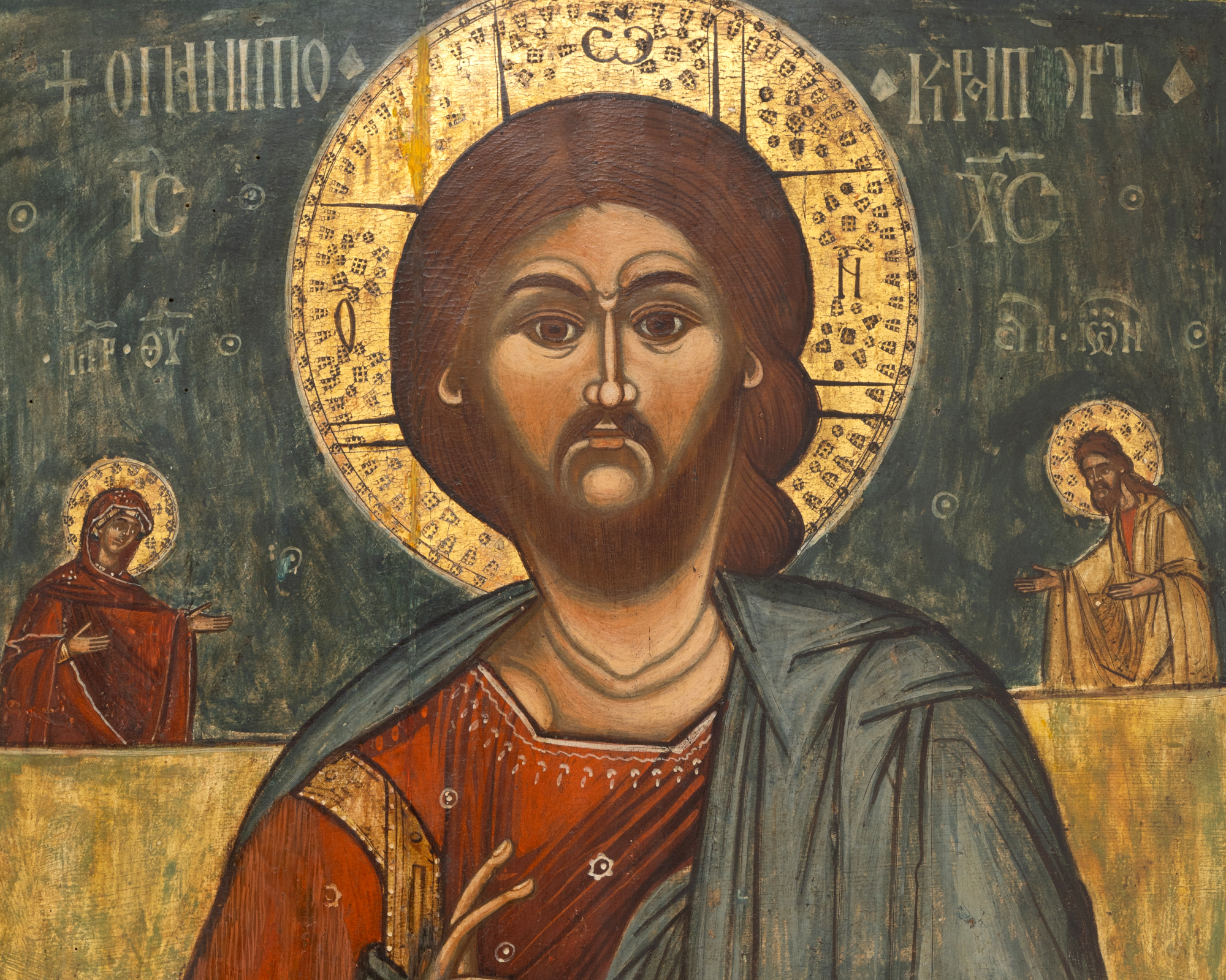 20Т. Icoană împărătească pe lemn, ”Iisus Hristos Pantocrator”, Țara Românească, școală brâncovenească, epoca lui Constantin Brâncoveanu, sfârșitul sec. XVII, piesă muzeală