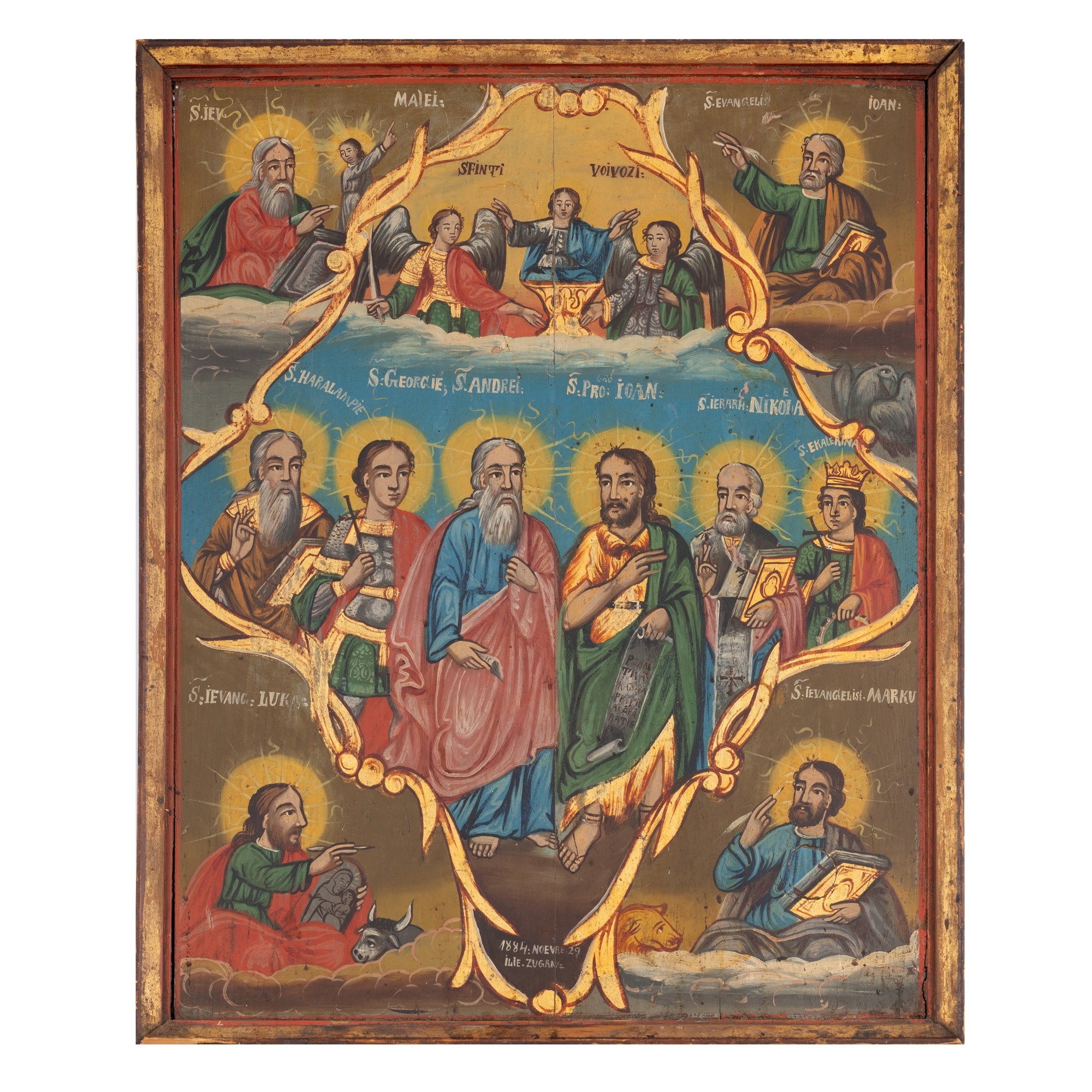110. Icoană împărătească pe lemn, ”Soborul Sfinților Arhangheli”, Ilie Zugravul, 29 noiembrie 1884