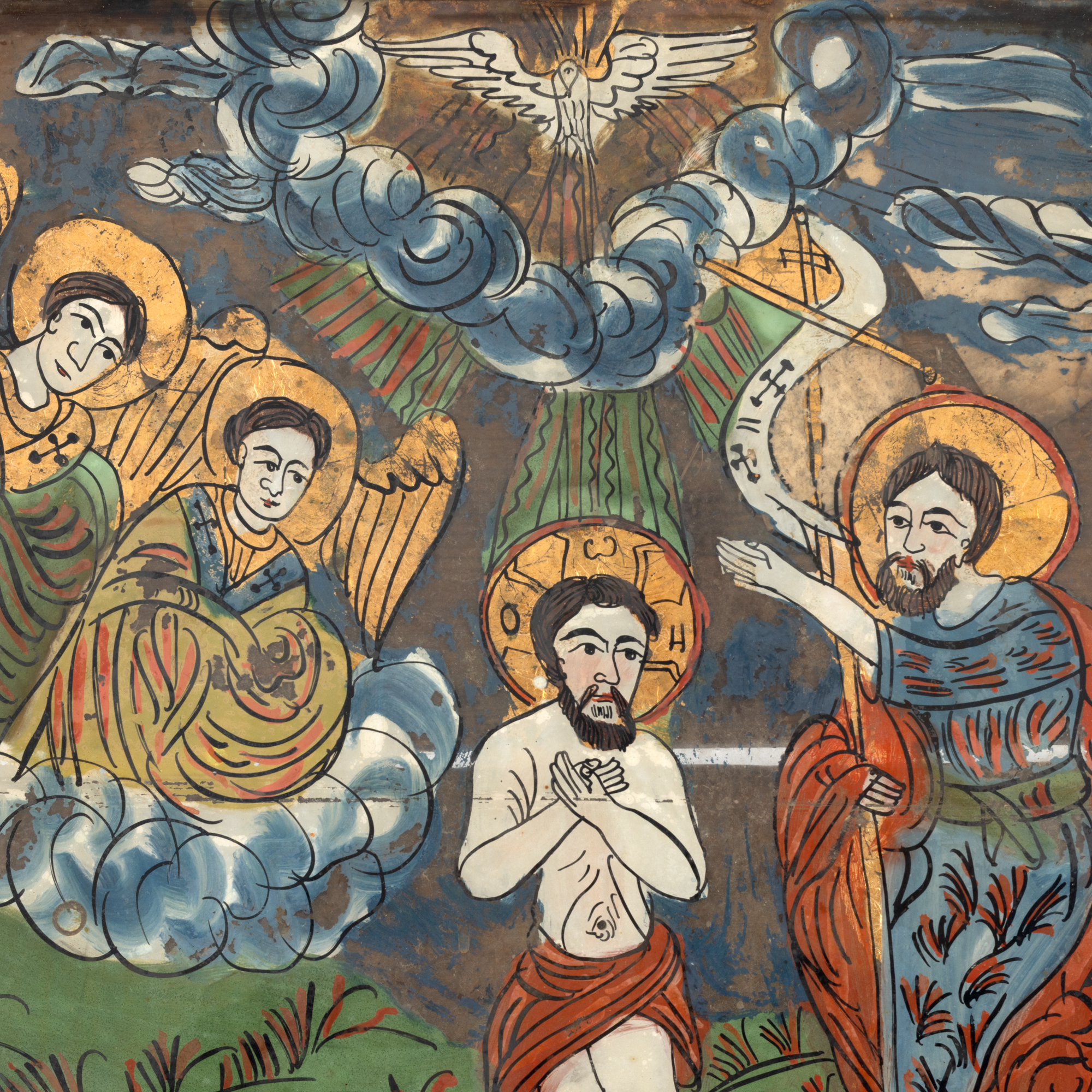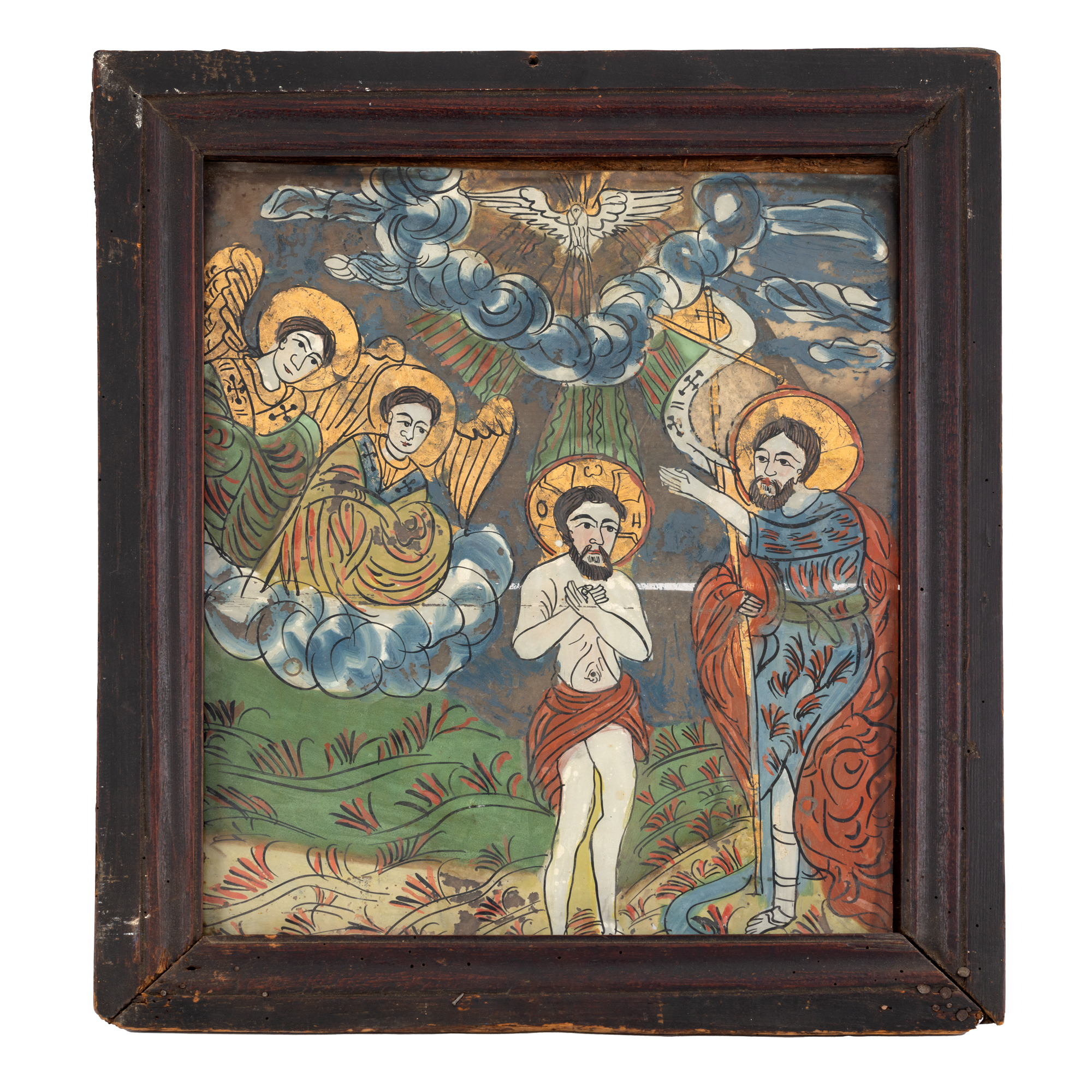 80. Icoană pe glajă, ”Botezul Domnului”, atelier din Făgăraș-Rupea, cca. 1830-1840, piesă rară, de colecție