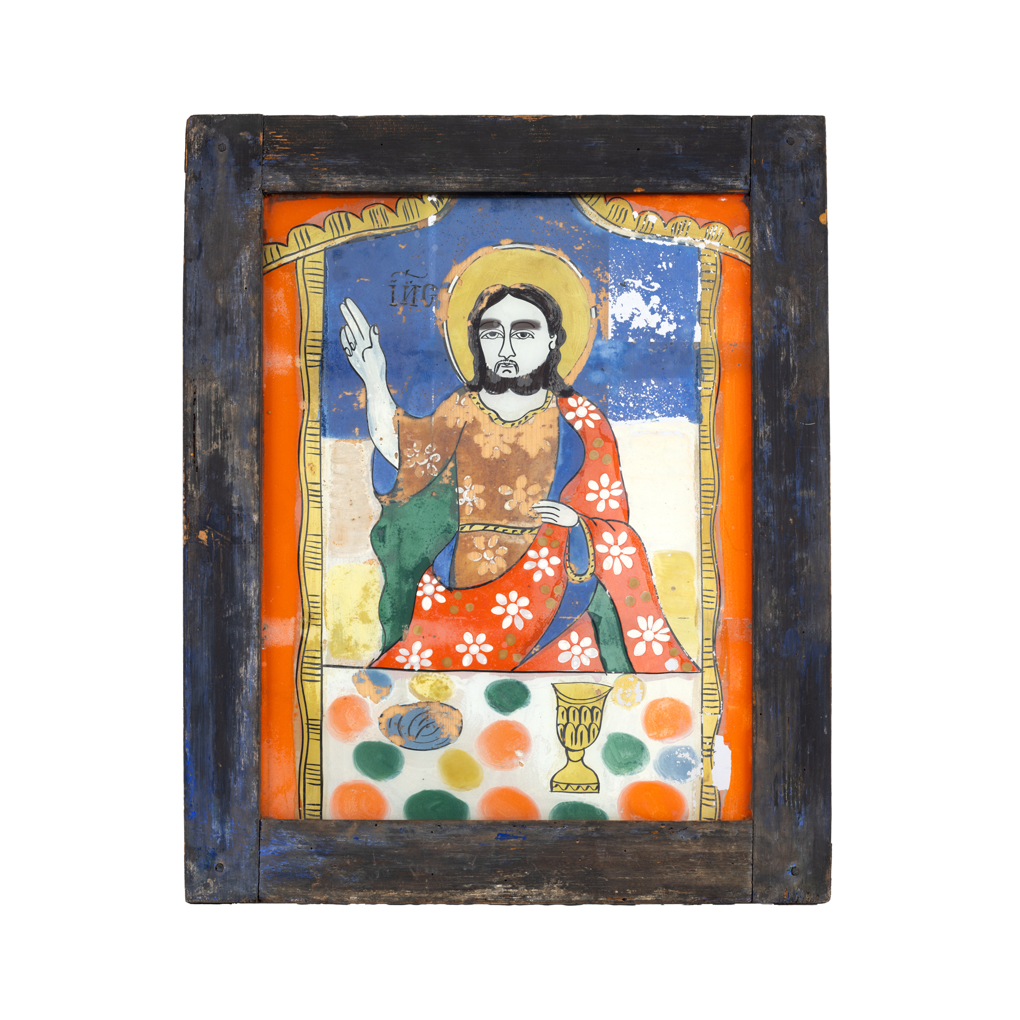 97. Icoană pe glajă, ”Iisus Hristos”, atelier din Banat, sfârșitul sec. XIX