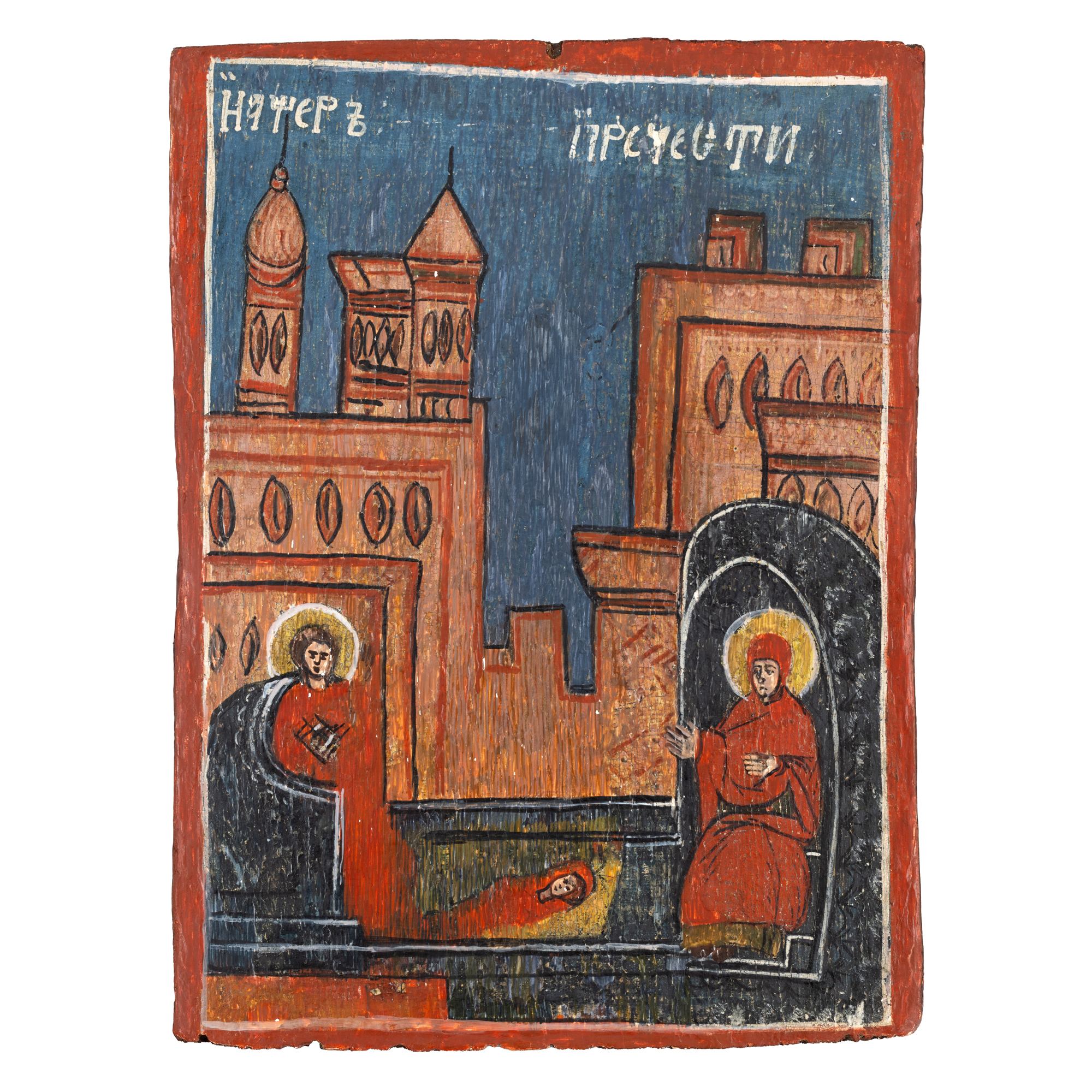 57. Icoană pe lemn, ”Nașterea Maicii Domnului”, școală românească, prima jumătate a sec. XIX