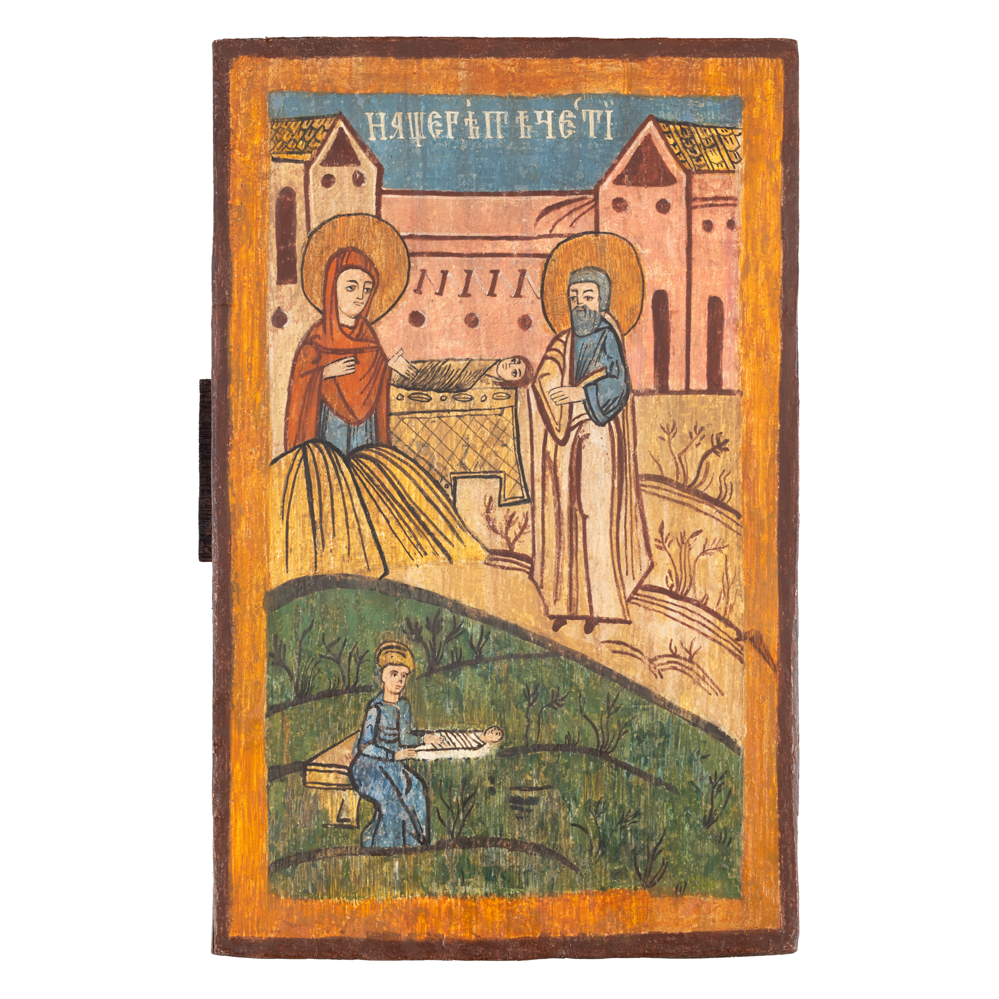 40. Icoană pe lemn, ”Nașterea Maicii Domnului”, școală românească, sfârșitul sec. XVIII-începutul sec. XIX