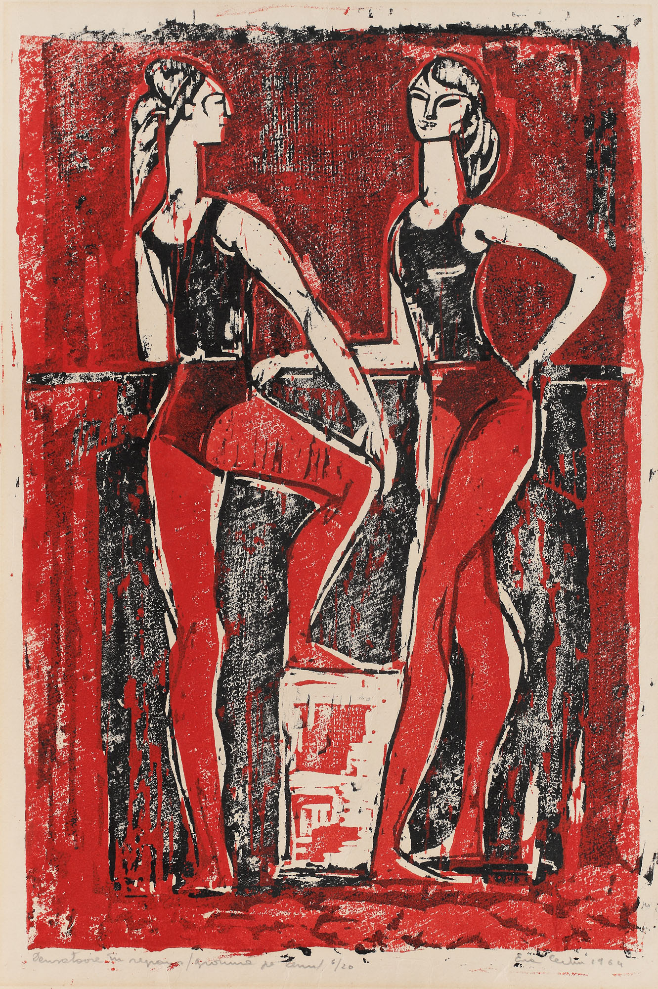 semnat și datat dreapta jos, în creion, "Eva Cerbu, 1964"; intitulat și numerotat stânga jos, în creion, "Dansatoare în repaos, 6/20"