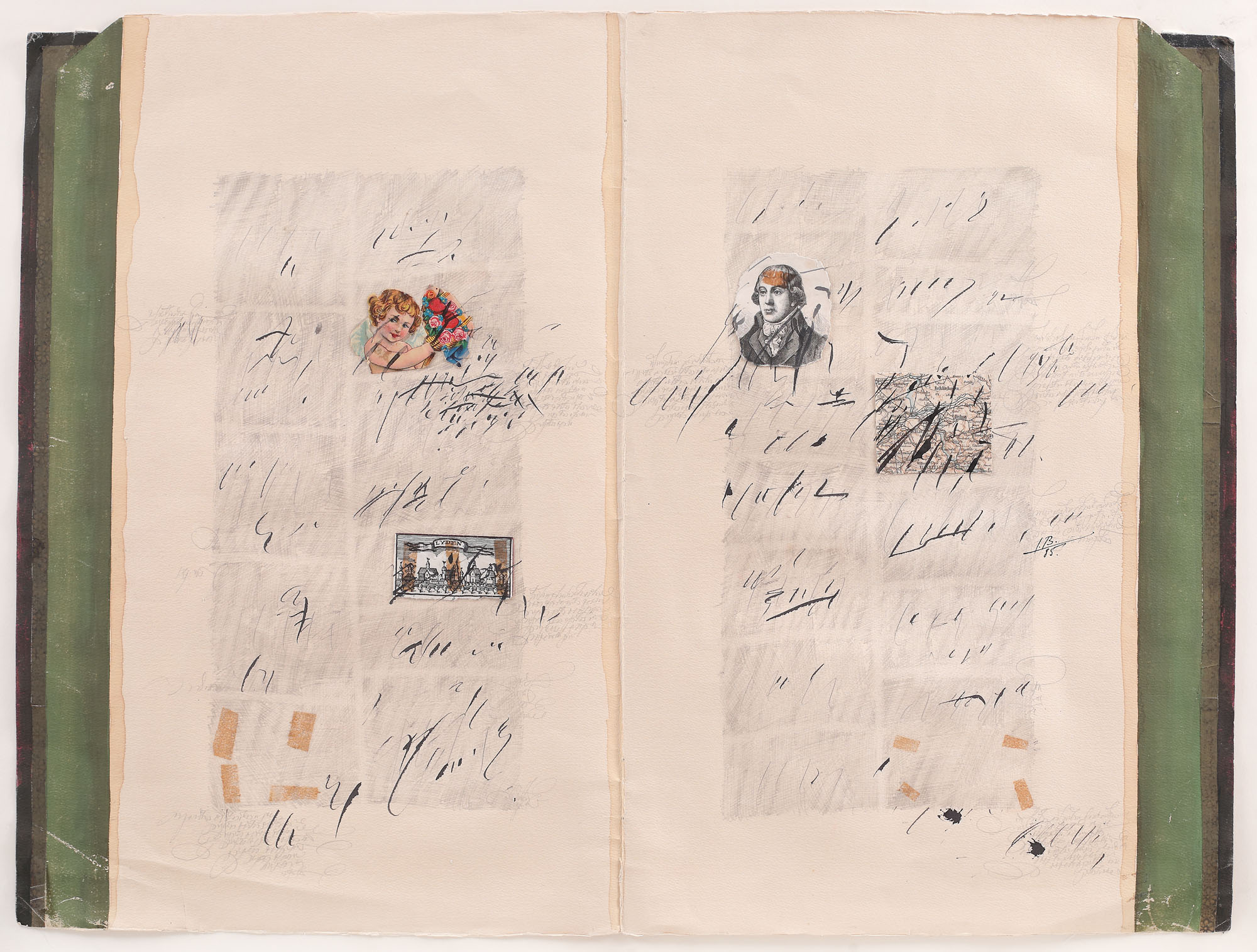 fotografie, tuș, colaj, tempera și creion pe carton