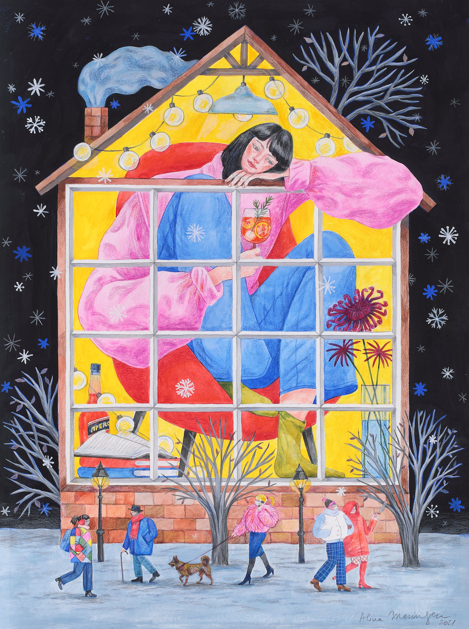 semnat și datat dreapta jos, cu gri, "Alina Marinescu, 2021"