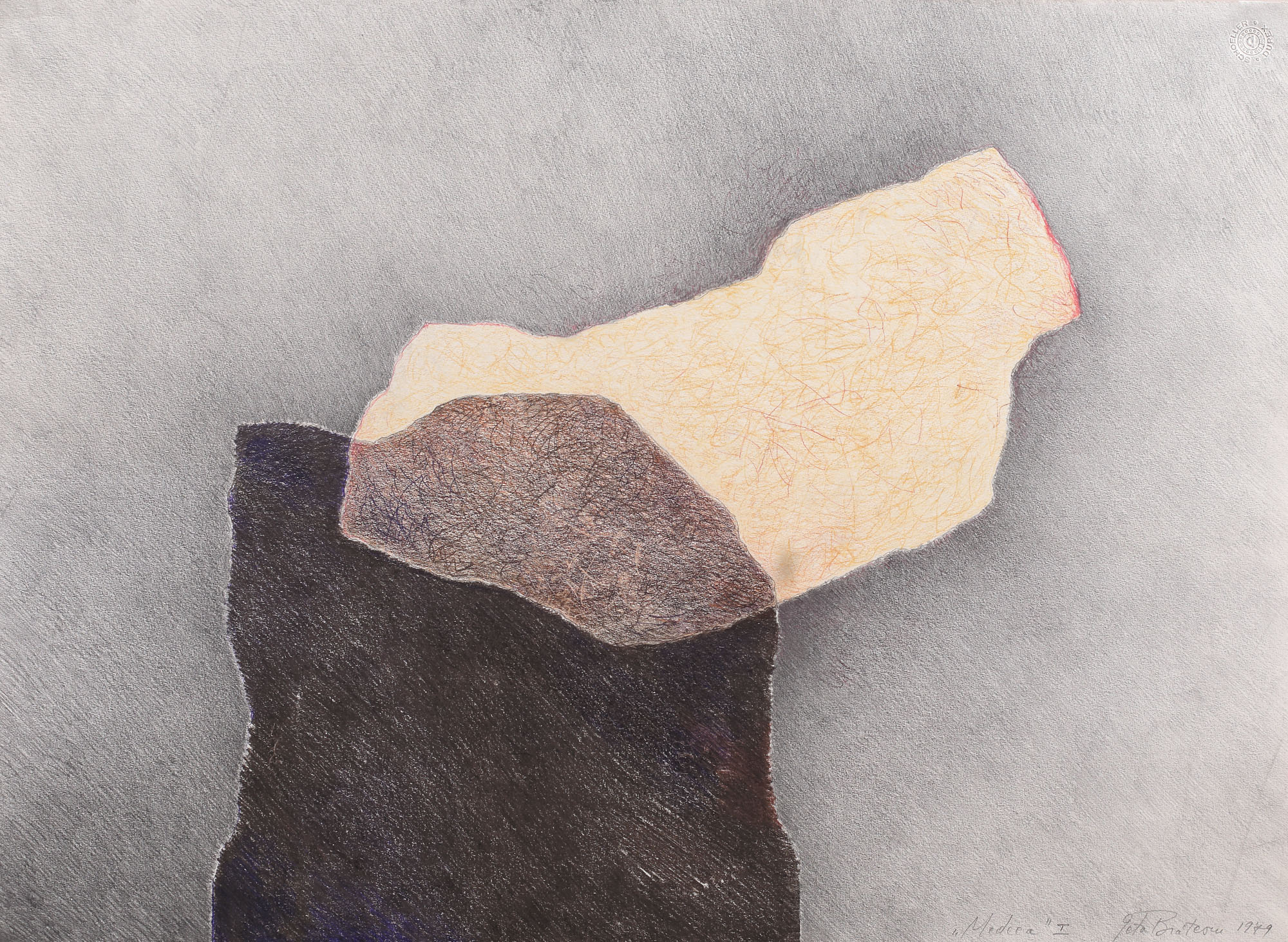 semnat, datat și intitulat dreapta jos, în creion, "Geta Brătescu, 1979, Medeea I"