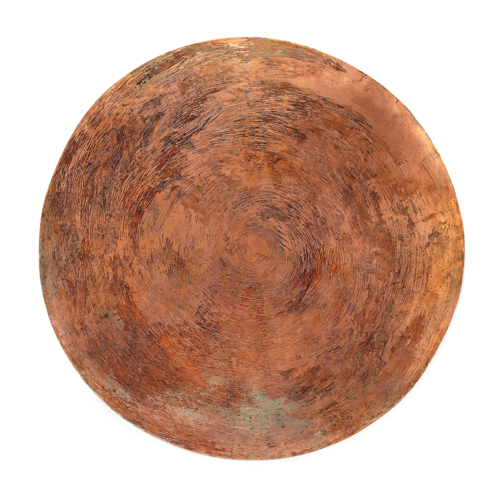 incizie pe suport de cupru, culoare aplicată prin tehnici de încernăluire și ștergere specifice gravurii tipar adânc