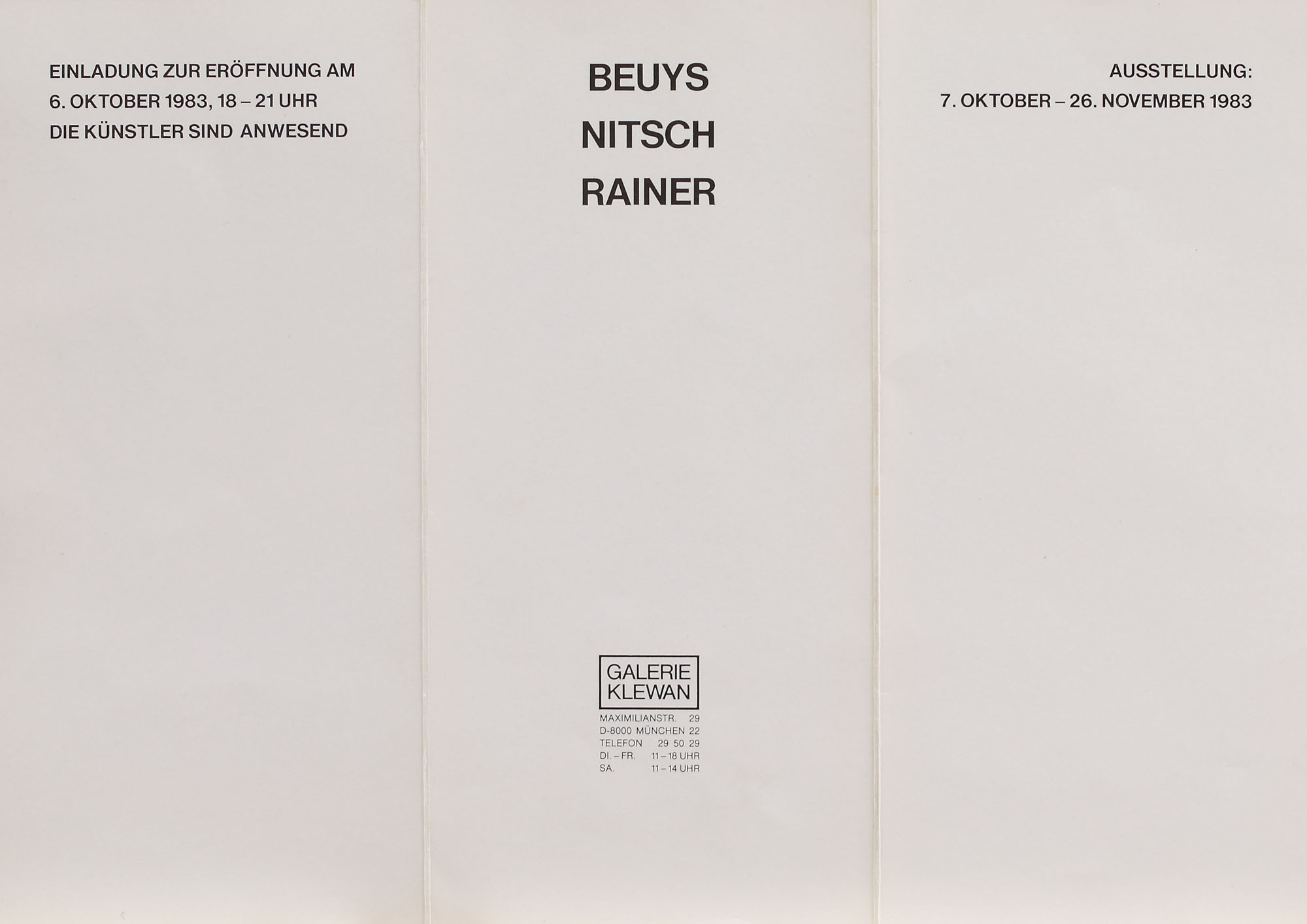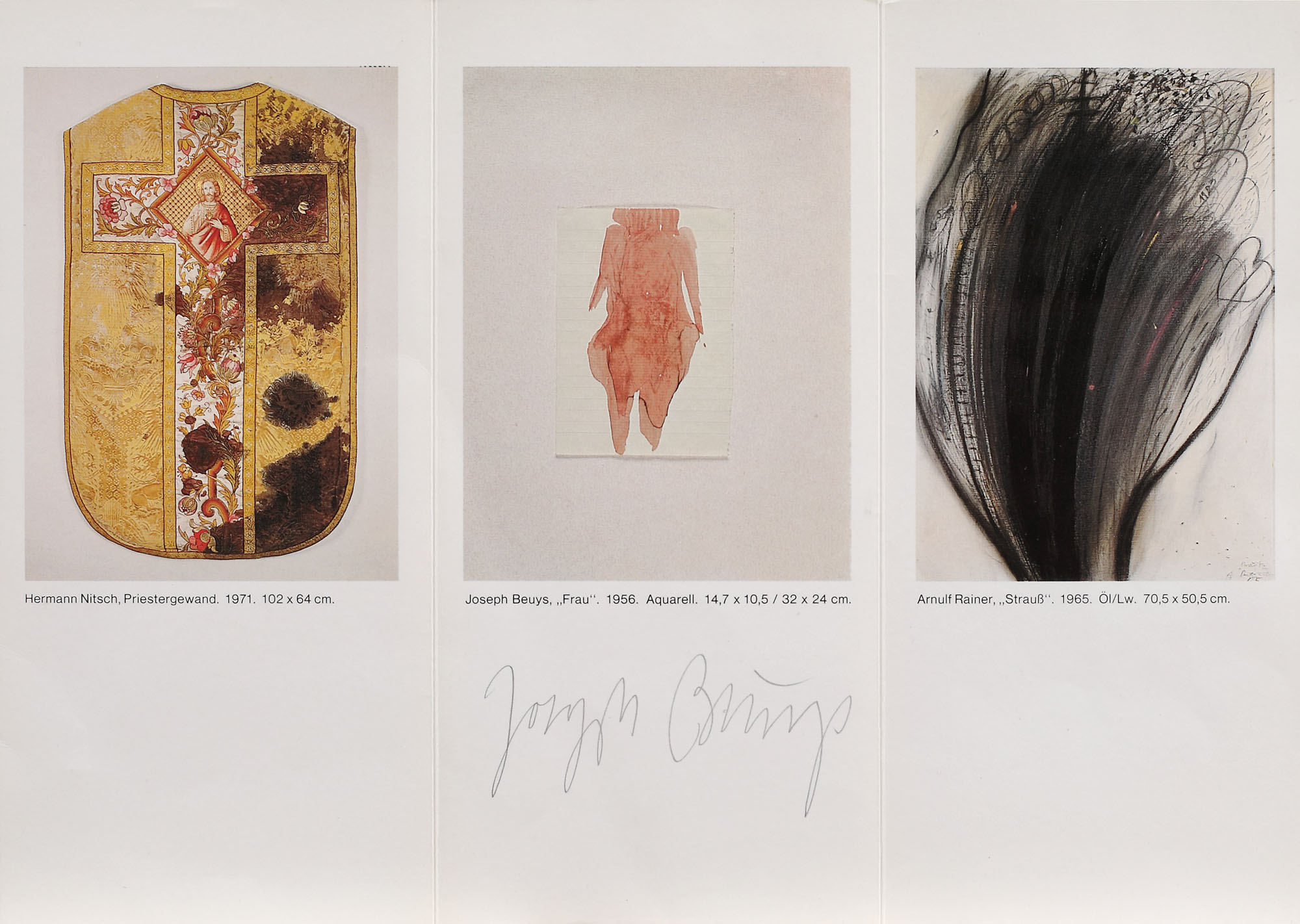 194. Pliant al expoziției "Beuys, Nitsch, Rainer", Galerie Klewan, 1983, purtând semnătura olografă a artistului Joseph Beuys
