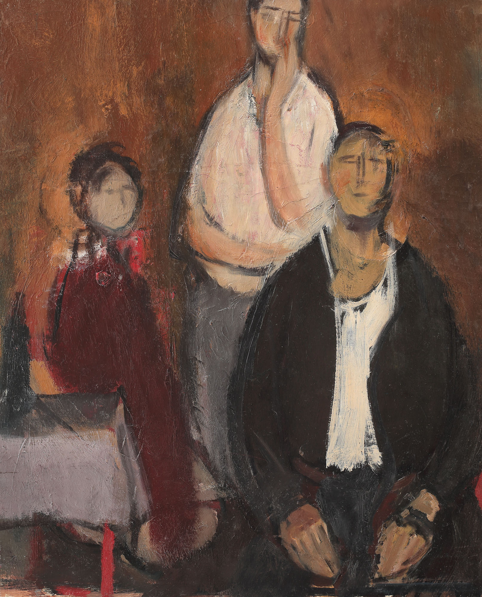 Fundamentată în zona antropocentrismului și ritmată de motive și teme concentrate, opera artistului Baba se desfășoară în jurul dimensiunii umane. Dezbătută și evocată pe parcursul creației sale în diferite ipostaze și înfățișări, dimensiunea umană își va găsi rezonanțe în portrete, autoportrete, serii cu arlechini, spaime sau regi nebuni, precum și în scene cu țărani sau muncitori. Realist prin tradiție, prin temperament și convingere, după cum artistul însuși se descrie, artistul Baba va realiza o pictură poziționată adesea în câmpul social. Una din temele care îl va preocupa începând cu sfârșitul anilor ’50 va fi tema țăranilor. Solitari, precum și în grup, strânși ca într-un nucleu, țăranii lui Baba vor fi surprinși adesea pe gânduri, preocupați pentru propria existență, pornind dis-de-dimineață la munca câmpului, în jurul mesei sau odihnindu-se după truda zilelor lungi. Cu o tendință spre expresivitatea morală a formelor, afirmată ca un centru al dialogului dintre lumină și întuneric, scenele cu țărani vor înfățișa adevărate imagini iconografice, mărturii ale unor drame sociale seculare, rememorate de artistul părtinitor. (G.M.)