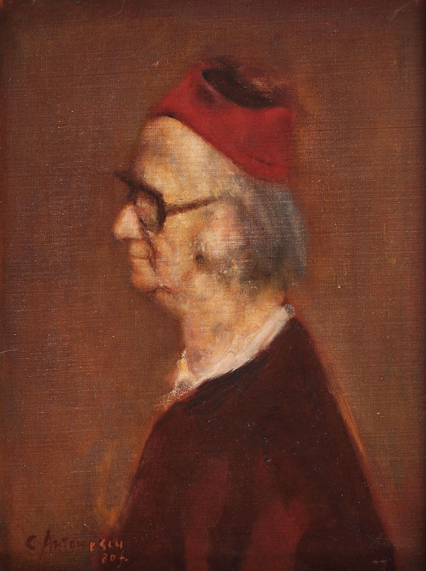 semnat și datat stânga jos, cu brun și oranj, "C. Antonescu, f. (19)80"