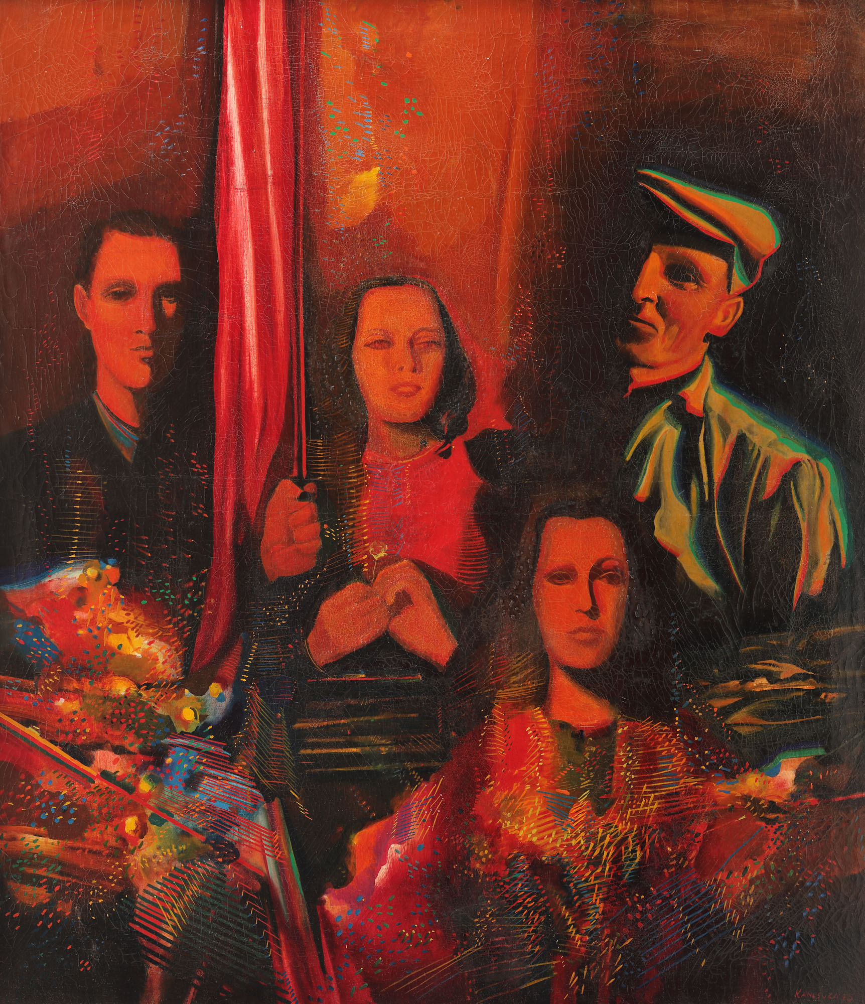 semnat și datat dreapta jos, cu roșu, "Kancsura, (19)75"