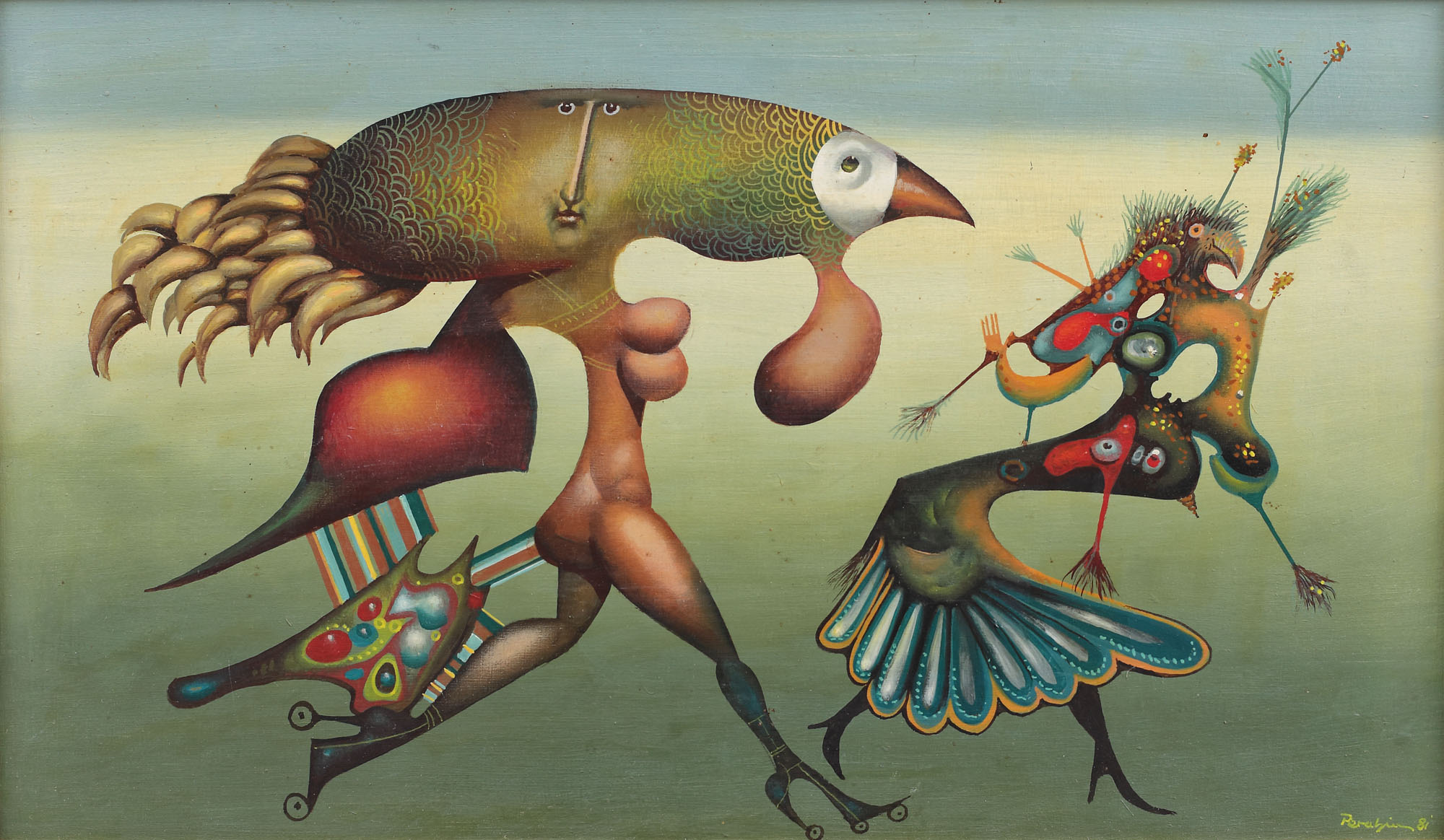 semnat și datat dreapta jos, cu galben, "Perahim, (19)81"