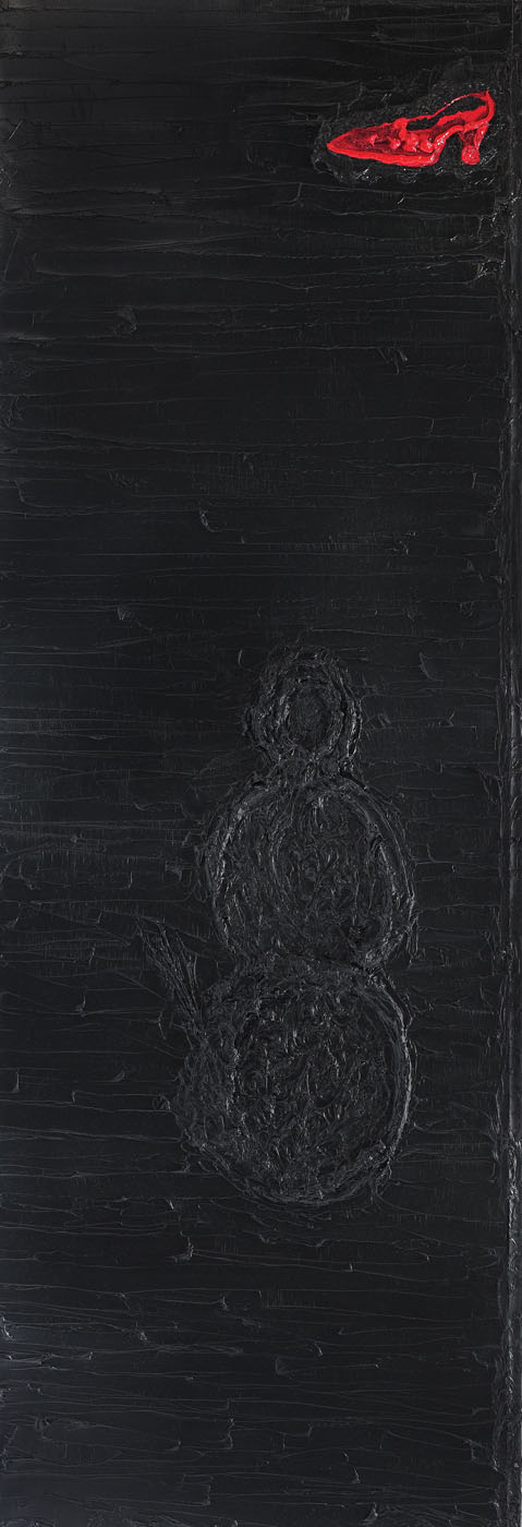 semnat, datat şi intitulat pe verso, cu verde, "E.V., 2007-2012, Pantoful roşu"