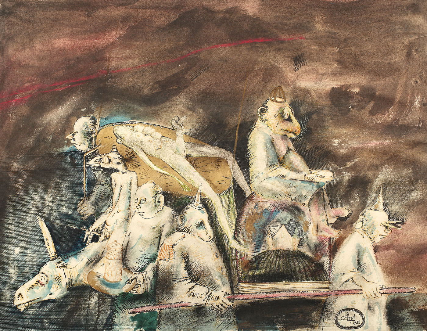 acuarelă, pastel, foiţă de aur şi tuş pe hârtie lipită pe carton