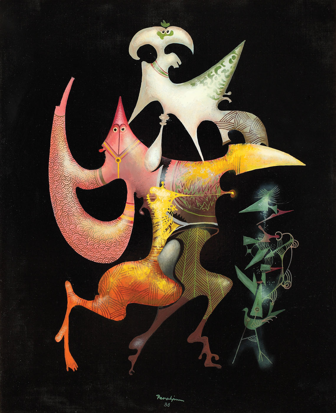 semnat şi datat central jos, cu verde, "Perahim, (19)88"