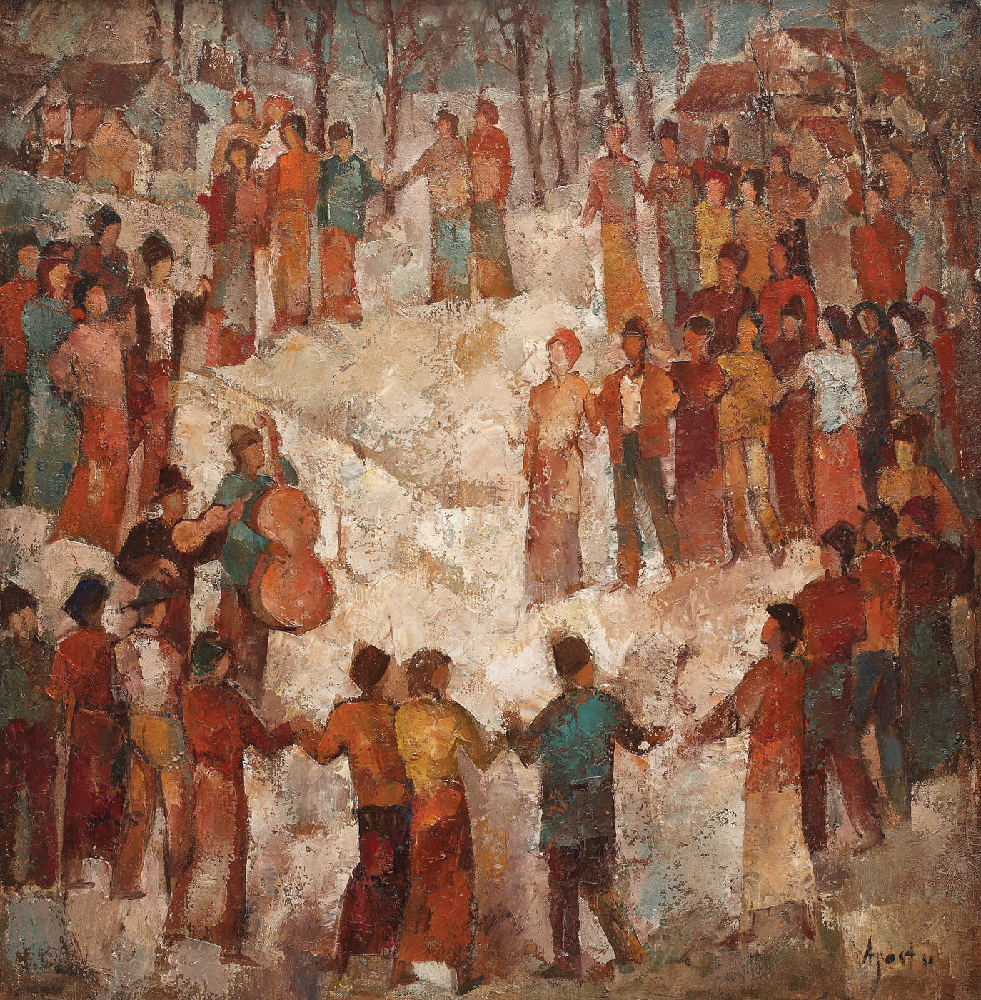 semnat şi datat dreapta jos, cu brun, "Apostu, (19)90"