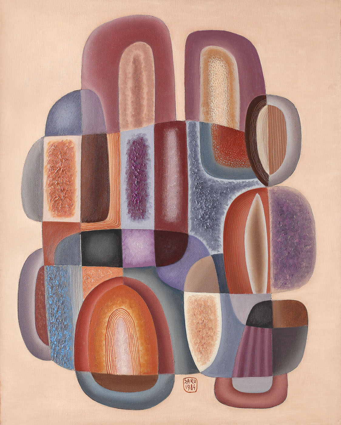 semnat şi datat central jos, cu roşu, "ŞARU, 1984"