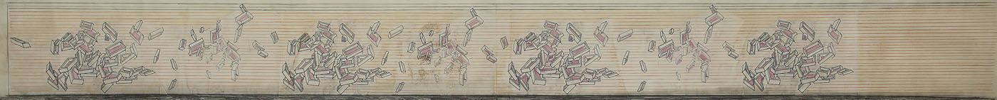 colaj, cărbune, creioane colorate pe hârtie
