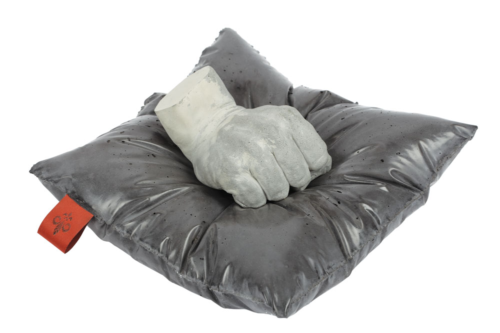 ciment, suport metalic şi material textil