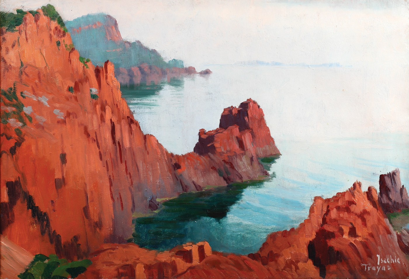 semnat şi localizat dreapta jos, cu alb, "Isachie, Trayas"