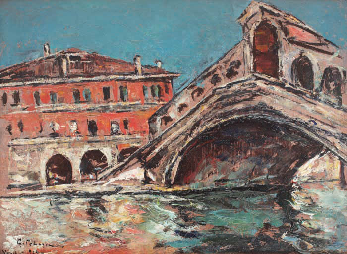George Călinescu definea Veneţiile lui Petraşcu astfel: „dramatice privelişti veneţiene ale lui Petraşcu, cu mult mai profunde decât ale lui Canaletto, descompuneri în culori grele şi somptuoase a unui cadavru de oraş”. După cum biografia și datările peisajelor ne mărturisesc, Petrașcu a pictat la Veneția între 1902 și 1939, timp în care se pare că a efectuat aproximativ 10 călătorii. Printre cele mai importante itinerarii le regăsim pe cele materializate în 1924, 1928 și 1934, ani în care pictorul a stăruit și a realizat o seamă de opere reprezentative. Unul dintre motivele care l-au atras în mod special s-a coagulat în jurul majestoaselor palate înșiruite pe Canale Grande, iar una dintre pânzele reprezentative ale acestui ciclu a fost realizată de Petrașcu în 1924, când a pictat “Chioggia" din fosta colecție Valentin Silvestri. Din sejurul realizat în cursul anului 1924 ne parvin o serie de opere ce ilustrează nu doar farmecul venețian, ci și trăsăturile cele mai statornice și pregnante ale picturii de atunci a maestrului. Aceste tablouri, definite atât de caracteristicile oferite de monumentalitatea surprinsă, cât și aplecarea pentru o artă a tonurilor reci, îl plasează pe Petrașcu între cei mai importanți pictori ai Veneției. Alături de Dărăscu și Ștefan Popescu, artistul reușește să conceapă un tablou al orașului definit tocmai de acea plasticitate oferită de volum realizat în pastă. Materia dură folosită de Petraşcu, dar şi tehnica aşezării şi crestării culorii pe carton sau pe pânză elimină fluiditatea şi conferă senzaţia de încremenire a imaginii în peisajul redat de artist.