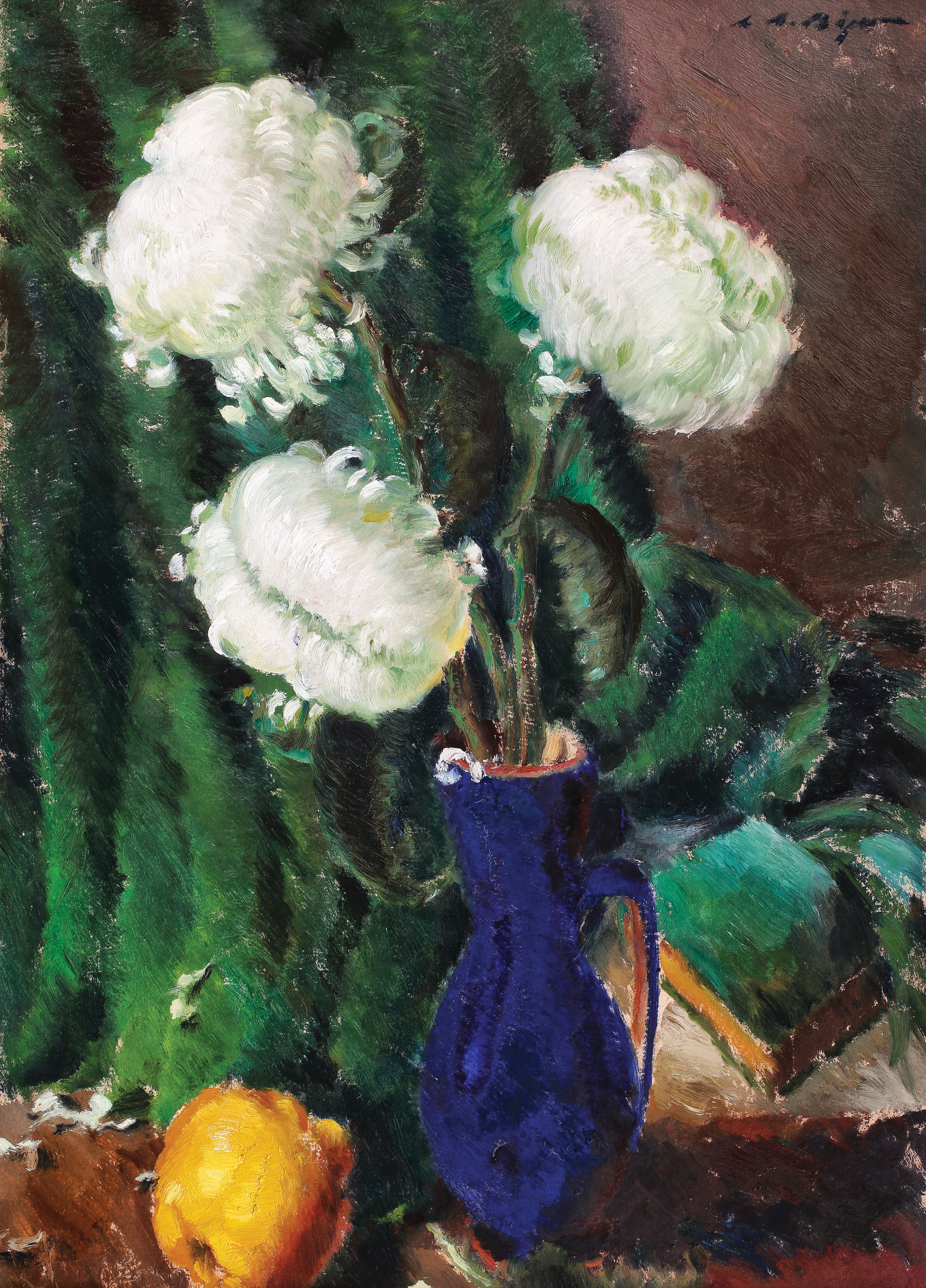 semnat dreapta sus, cu albastru, "L.A. Biju"