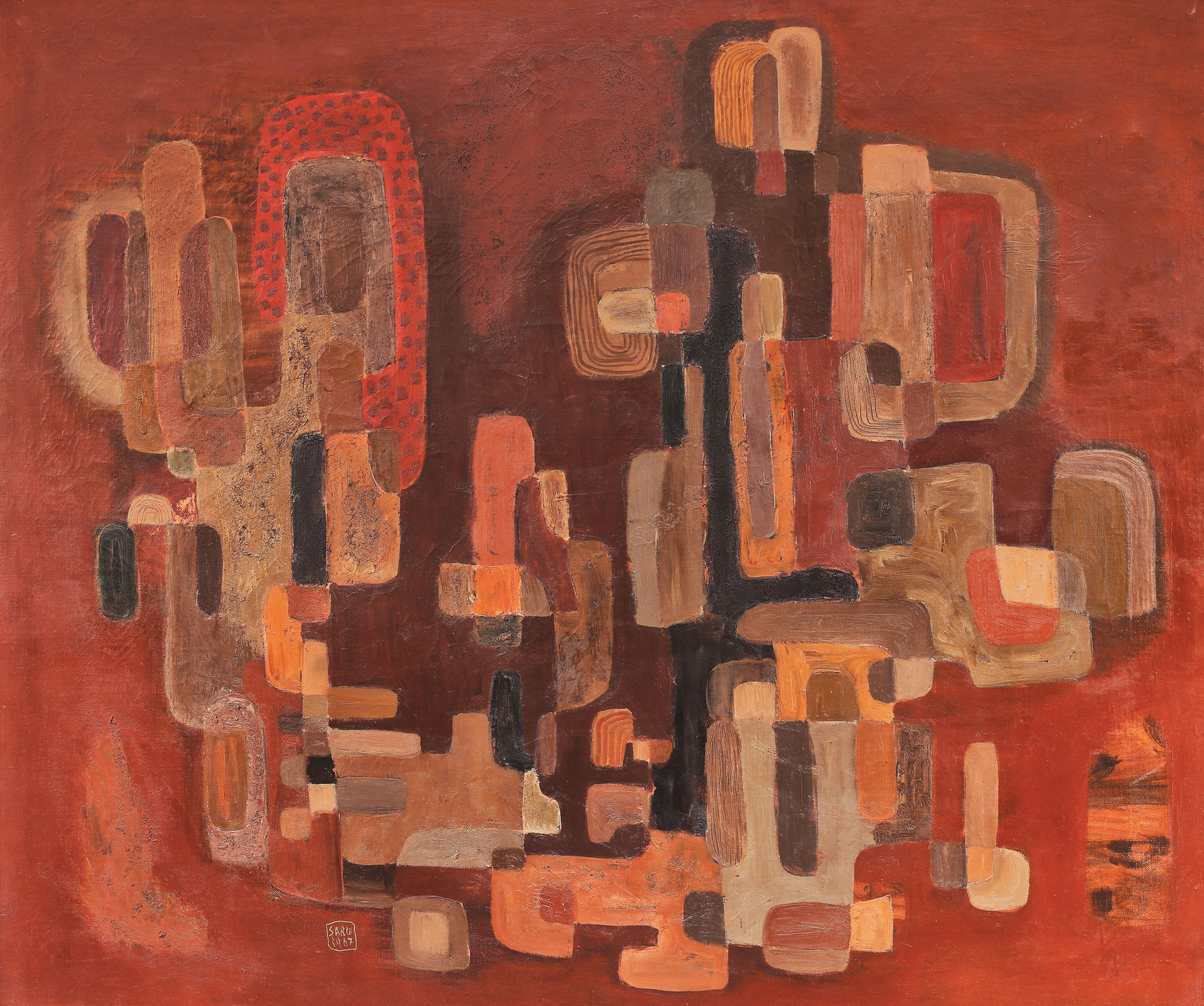 semnat și datat central jos, cu gri, "ŞARU, 1967"