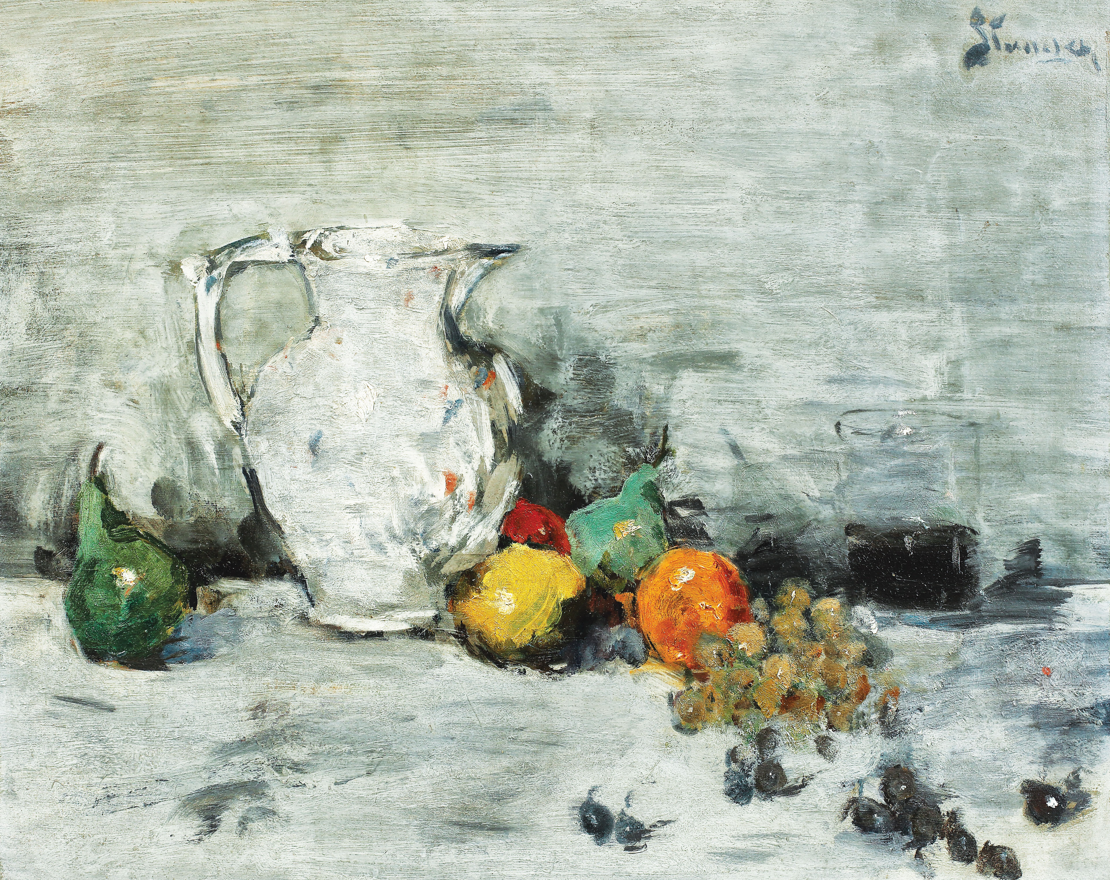 Prezență nelipsită a salonelor din țară sau din străinătate, Eustațiu Stoenescu s-a dedicat după anii de studiu, exclusiv picturii, obținând o extraordinară dexteritate de a picta. În 1914 a fost medaliat pentru lucrarea Dejunul expusă la Salonul Oficial din Paris, moment de recunoaștere a valorii artistice. A călătorit intens, căutând să se îndepărteze de situația politică a începutului de secol al XX-lea, în Danemarca, Suedia, Franța, America, personala deschisă în 1921 la Galeria Bernheim–Jeune, consacrându-l internațional. Temă predilectă a perioadei sale de început (și dusă la excelență la maturitate), natura statică este în genere dominată de game de culori stinse, griurile care atrăgeau atenția cronicarilor încă de la primele expoziții. În rapide și dezarticulate lovituri de penel, compozițiile lui Stoenescu vibrează prin modelarea afectivă a formelor, deseori pictate cu tușe largi, rapide și pline de culoare.
