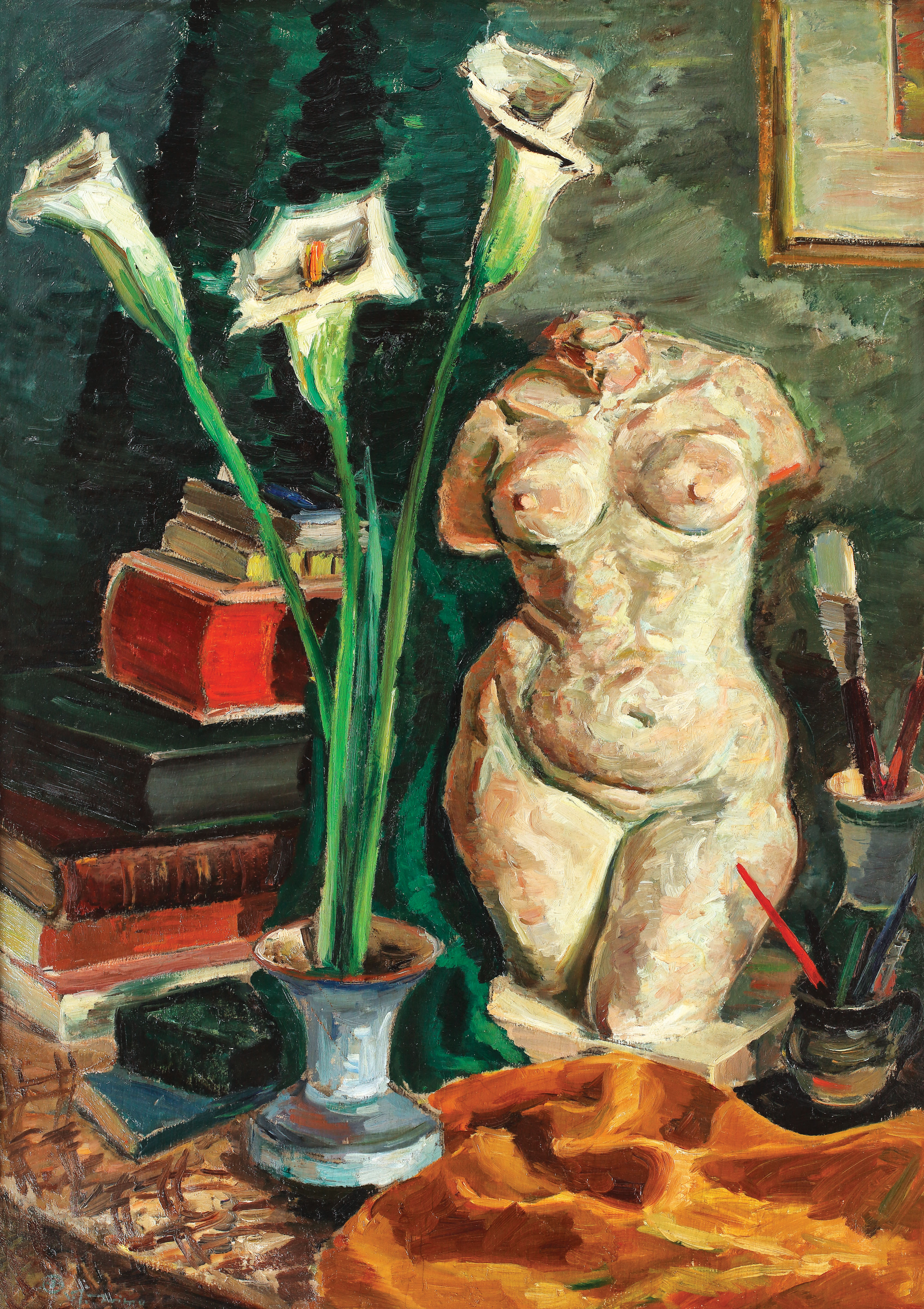 Opera a participat la Salonul Oficial, mai 1944, Fundația "Dalles", București și este menționată și reprodusă în catalogul expoziției la pag. 18, cat 105, respectiv în planșele catalogului. Opera este reprodusă pe coperta ziarului "Universul literar", anul 53, nr. 34-35, 20 decembrie 1944. Pe verso, etichetă de participare la Salonul Oficial de Pictură şi Sculptură, Ministerul Culturii Naționale, Direcția Artelor, Bucureşti, 1944.