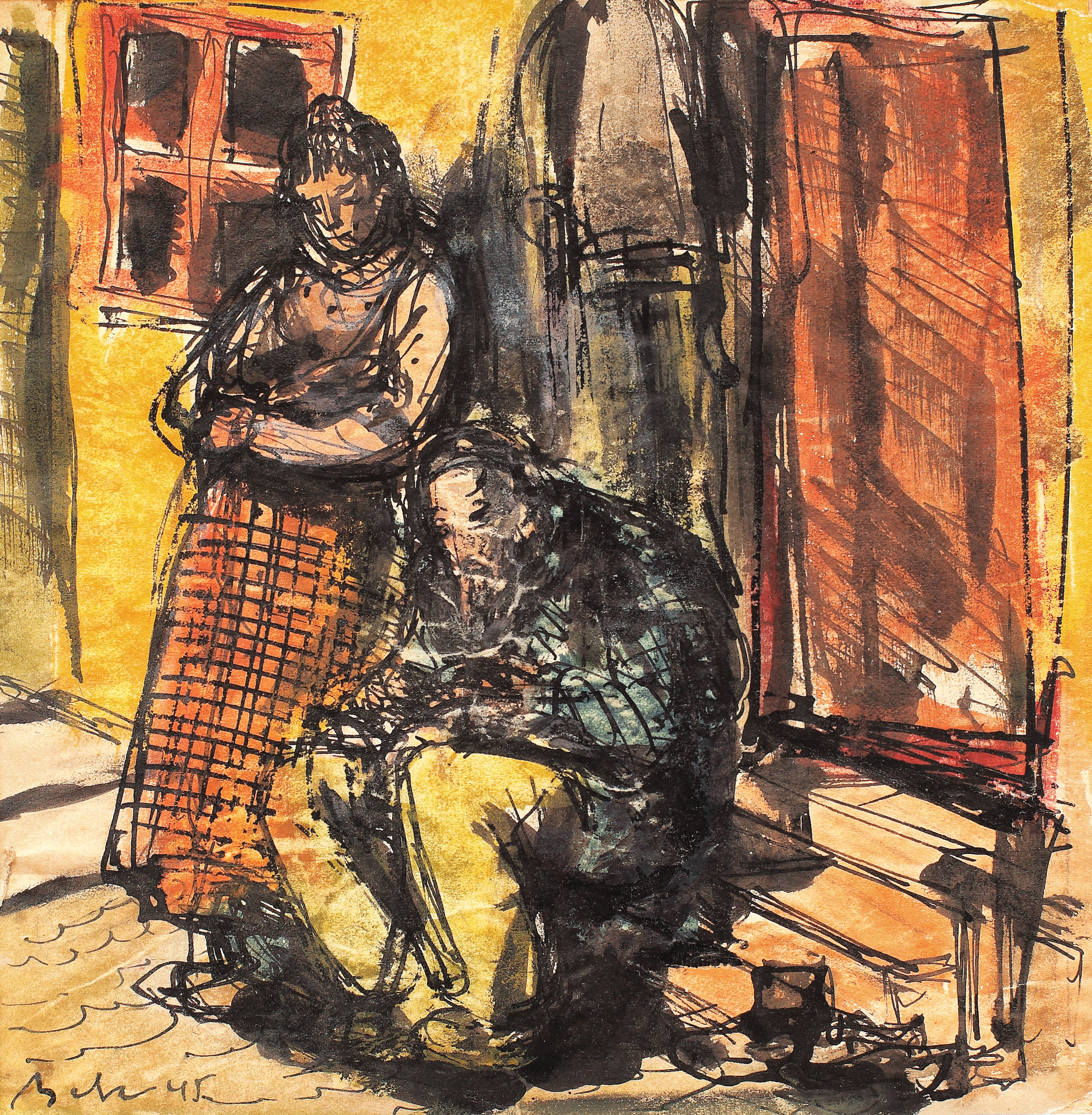 semnat și datat stânga jos, în tuș, "Baba, (19)45"