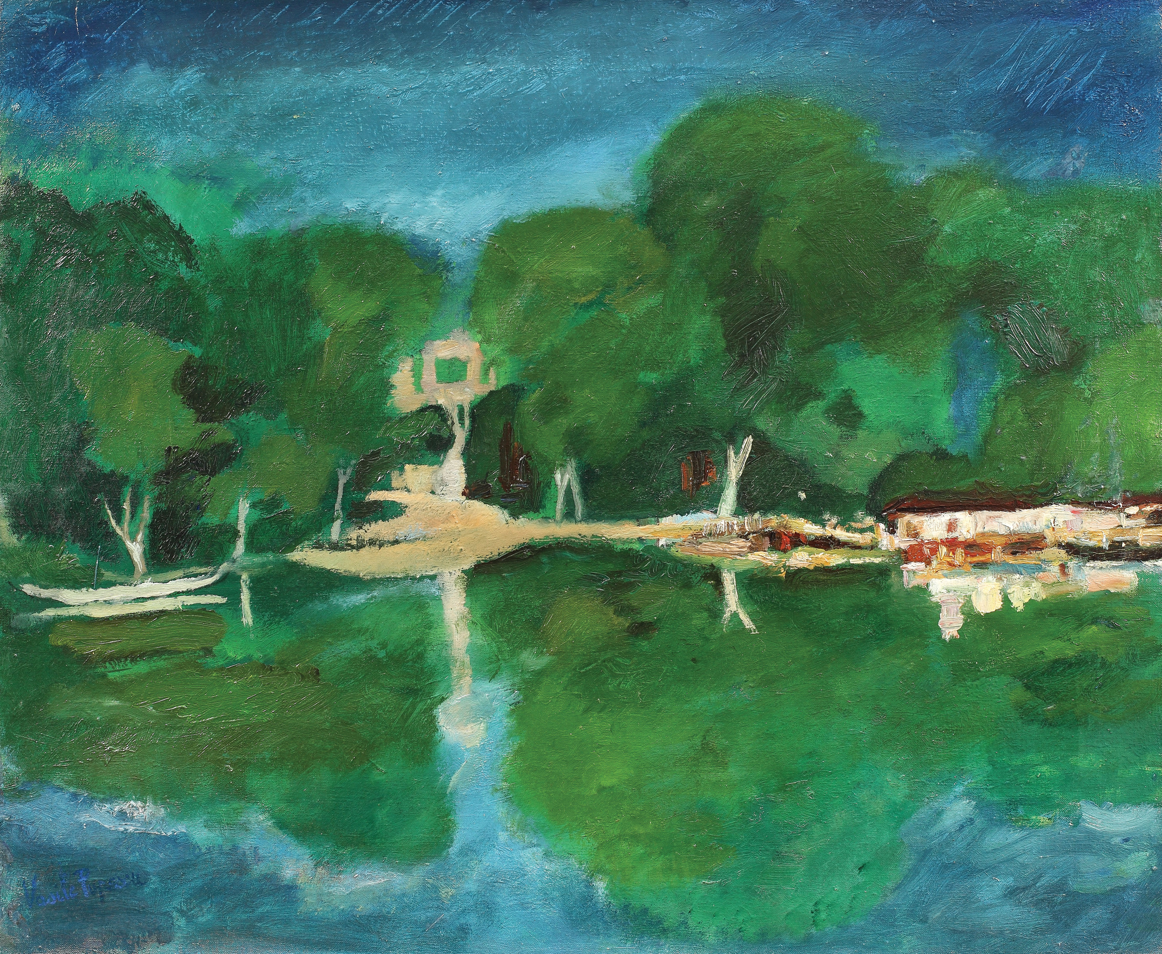 semnat stânga jos, cu albastru, ''Vasile Popescu''