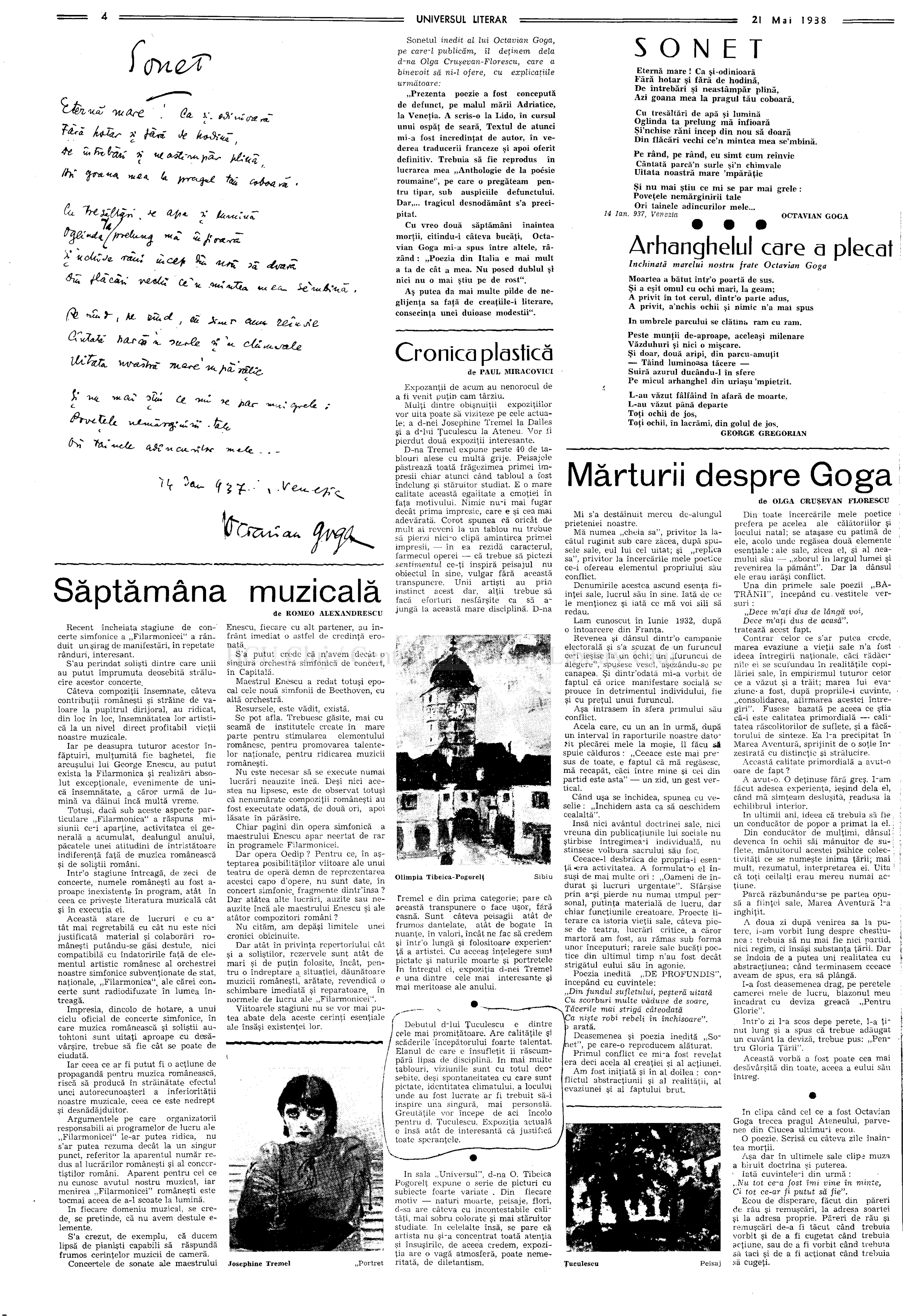 Opera a participat la prima expoziție personală Țuculescu, Ateneul Român, București și este reprodusă ca atare în "Universul literar", anul XLVII, nr. 14, 21 mai 1938, pag. 4.