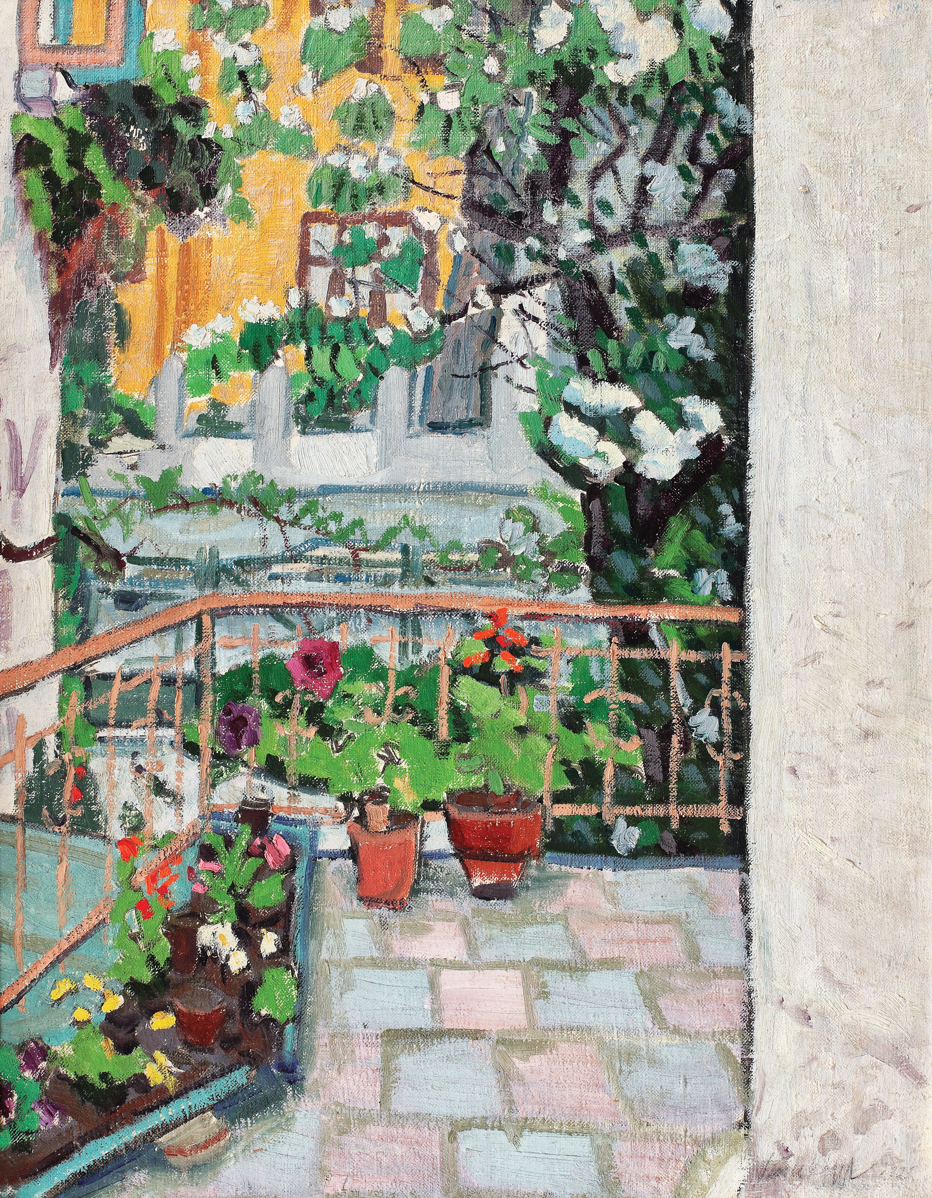 semnat şi datat dreapta jos, în creion, "Vasile Varga, 1982"; intitulat, datat şi notat dreapta sus, cu verde, "Terasă, 9.v.(19)82, c.VIII, p.39"