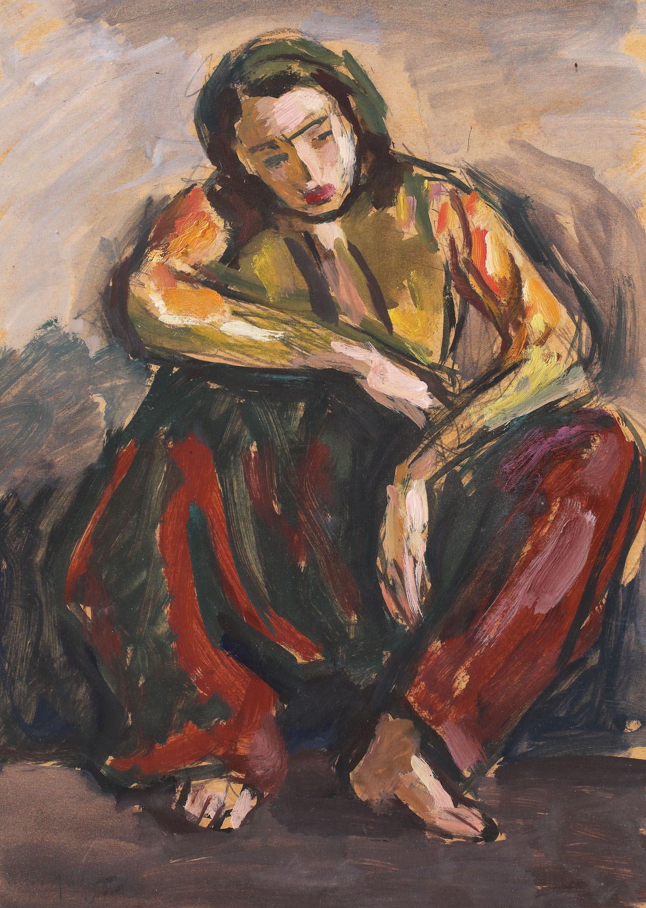 acuarelă și accente de ulei pe hârtie