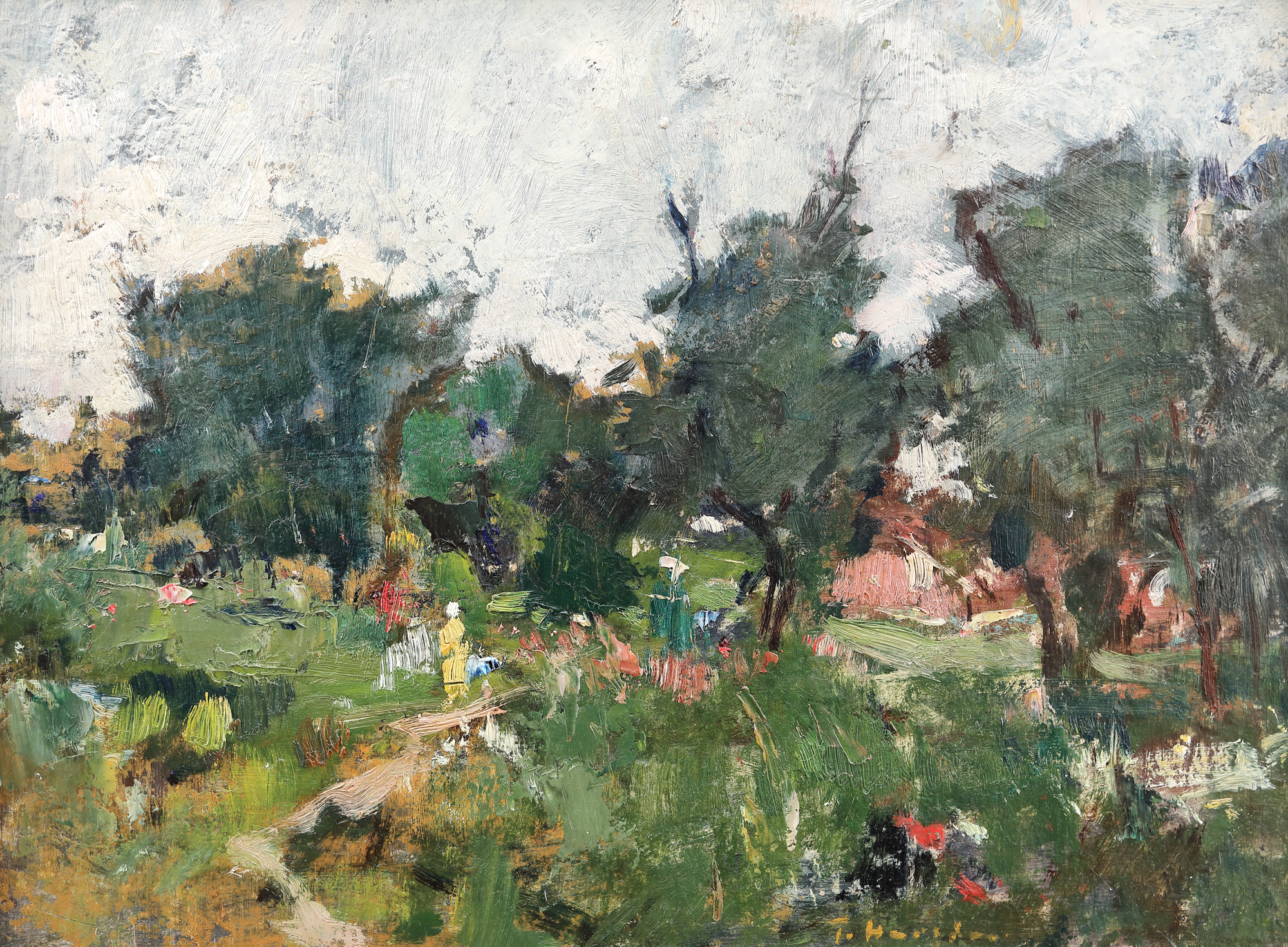 semnat dreapta jos, cu ocru, ”T. Harșia”
