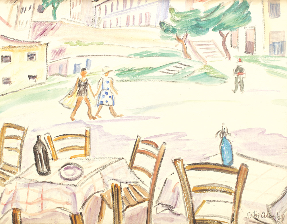 Opera a participat la: Expoziţia Retrospectivă Nutzi Acontz, Iaşi, decembrie 1967 şi este reprodusă în catalogul expoziţiei, la pag. 55, sub titulatura “La mare”; Expoziţia Retrospectivă “Nutzi Acontz, 100 de ani de la naşterea artistei”, Iaşi, octombrie 1994-ianuarie 1995 şi este reprodusă la cat. nr. 4, sub titulatura “La mare”.