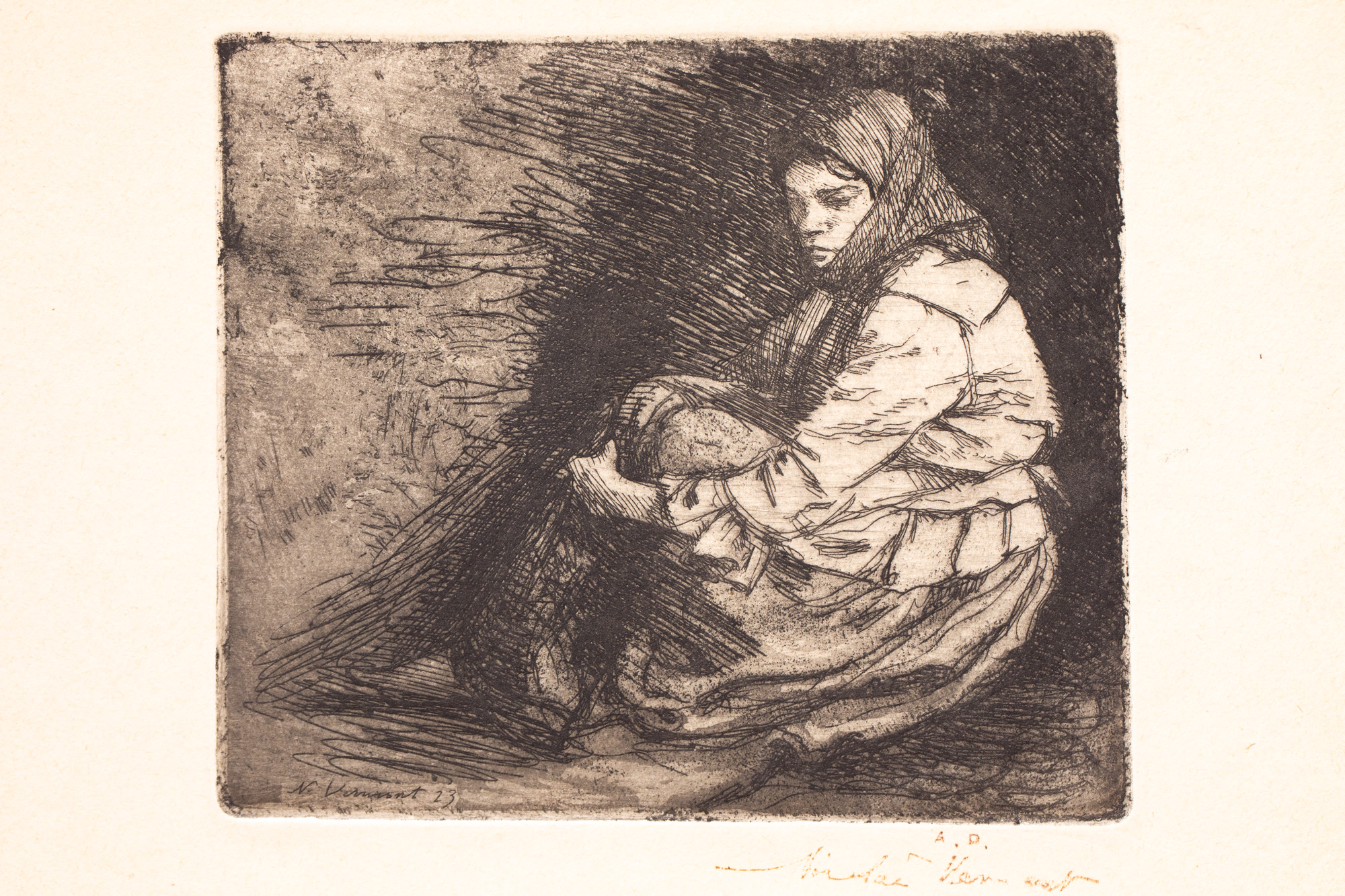 semnat și datat stânga jos, în placă, ”N. Vermont, (19)23”; semnat dreapta jos, sub cadru, în peniță, "Nicolae Vermont"