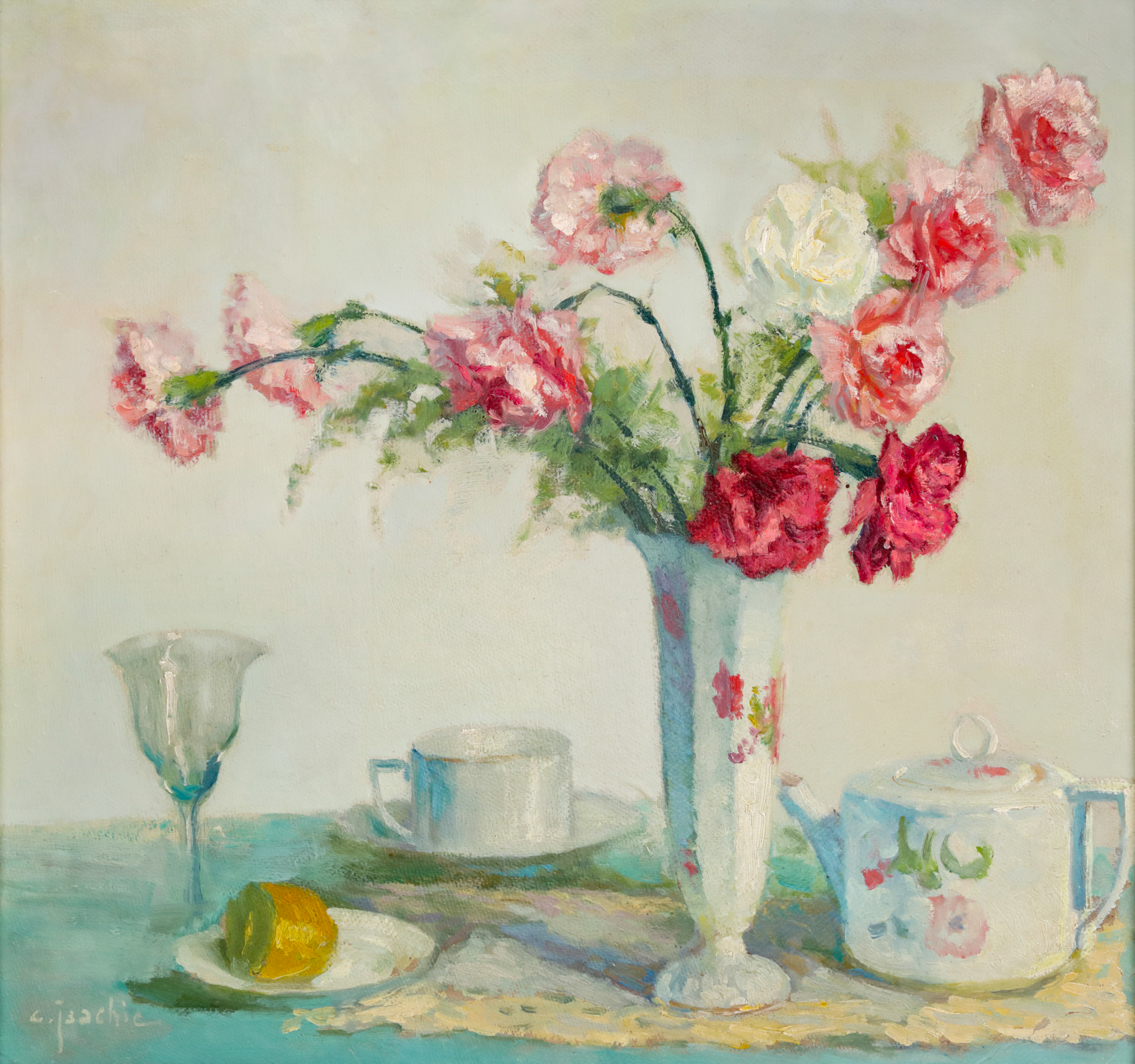 semnat stânga jos, cu gri, ”C. Isachie”