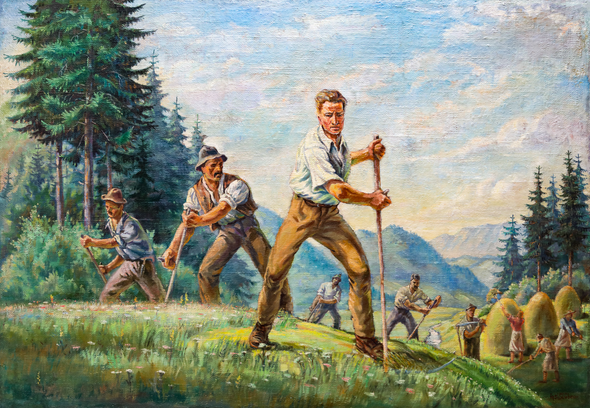 semnat și datat dreapta jos, cu roșu, ”K. Hubner, 1951”