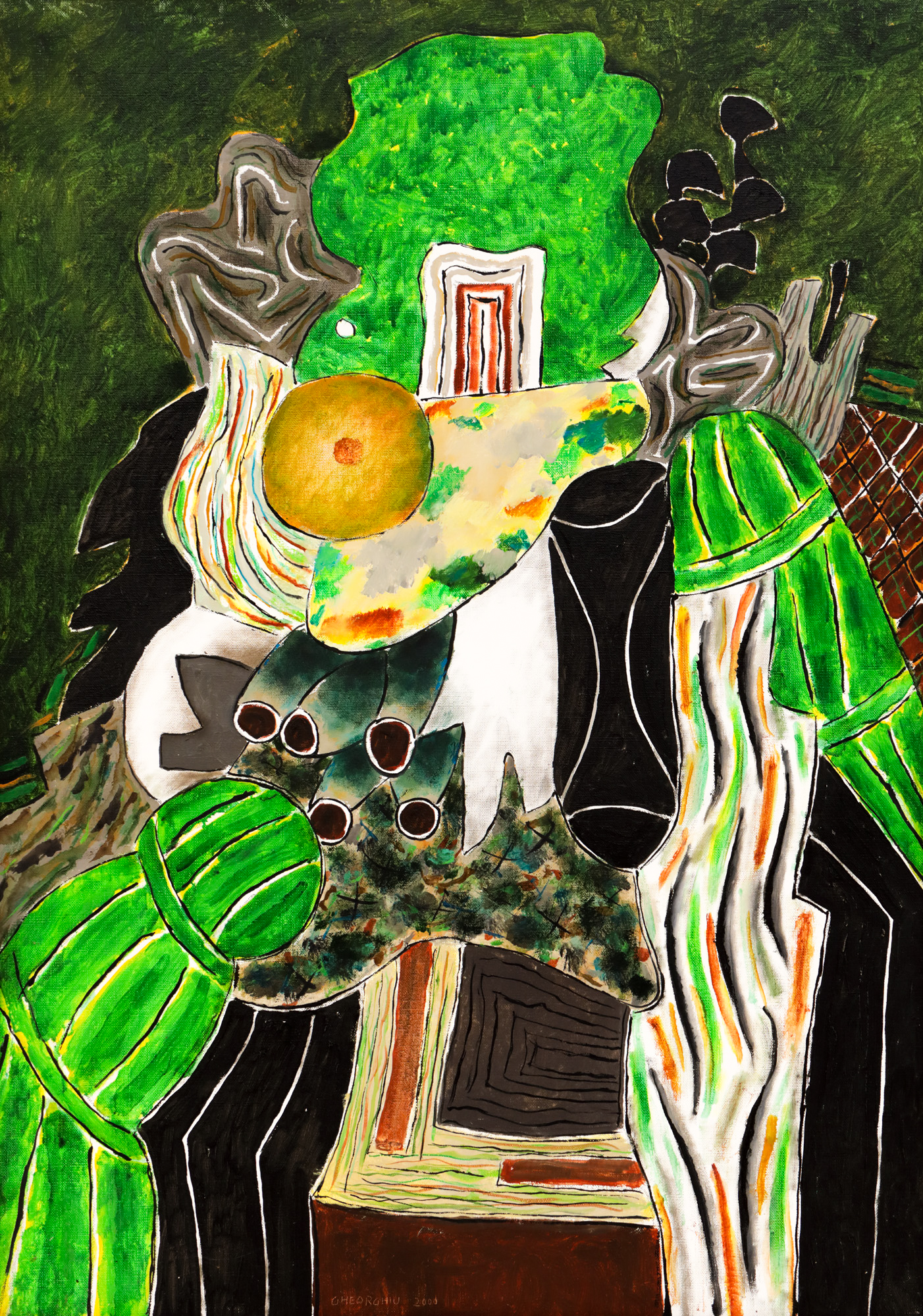 semnat și datat central jos prin zgrafiere, "GHEORGHIU, 2000"