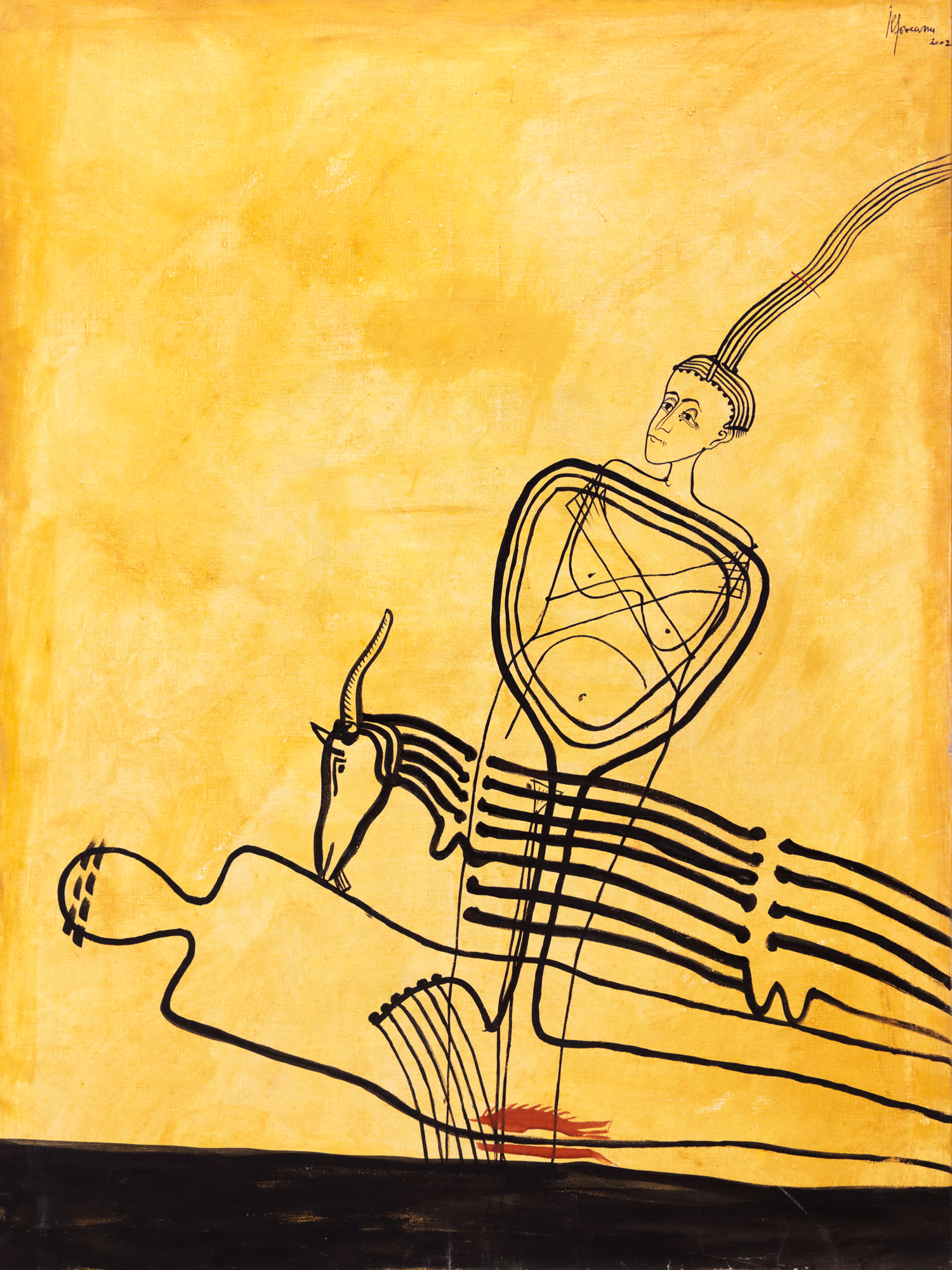 semnat și datat dreapta sus, cu negru, ”Ilfoveanu, 2002”