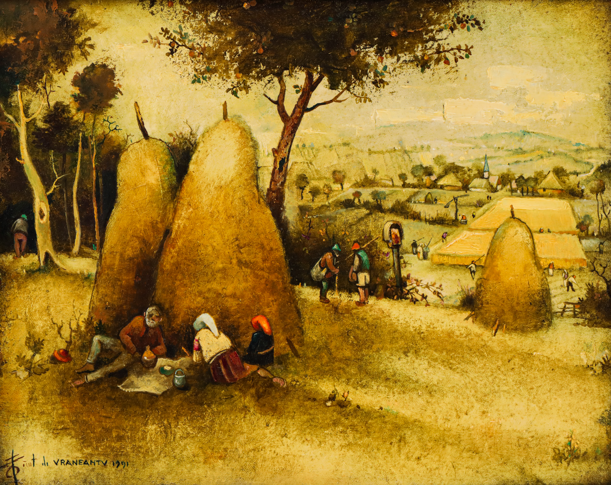 semnat și datat stânga jos, cu verde, ”făcut de Vrăneanțu, 1991”