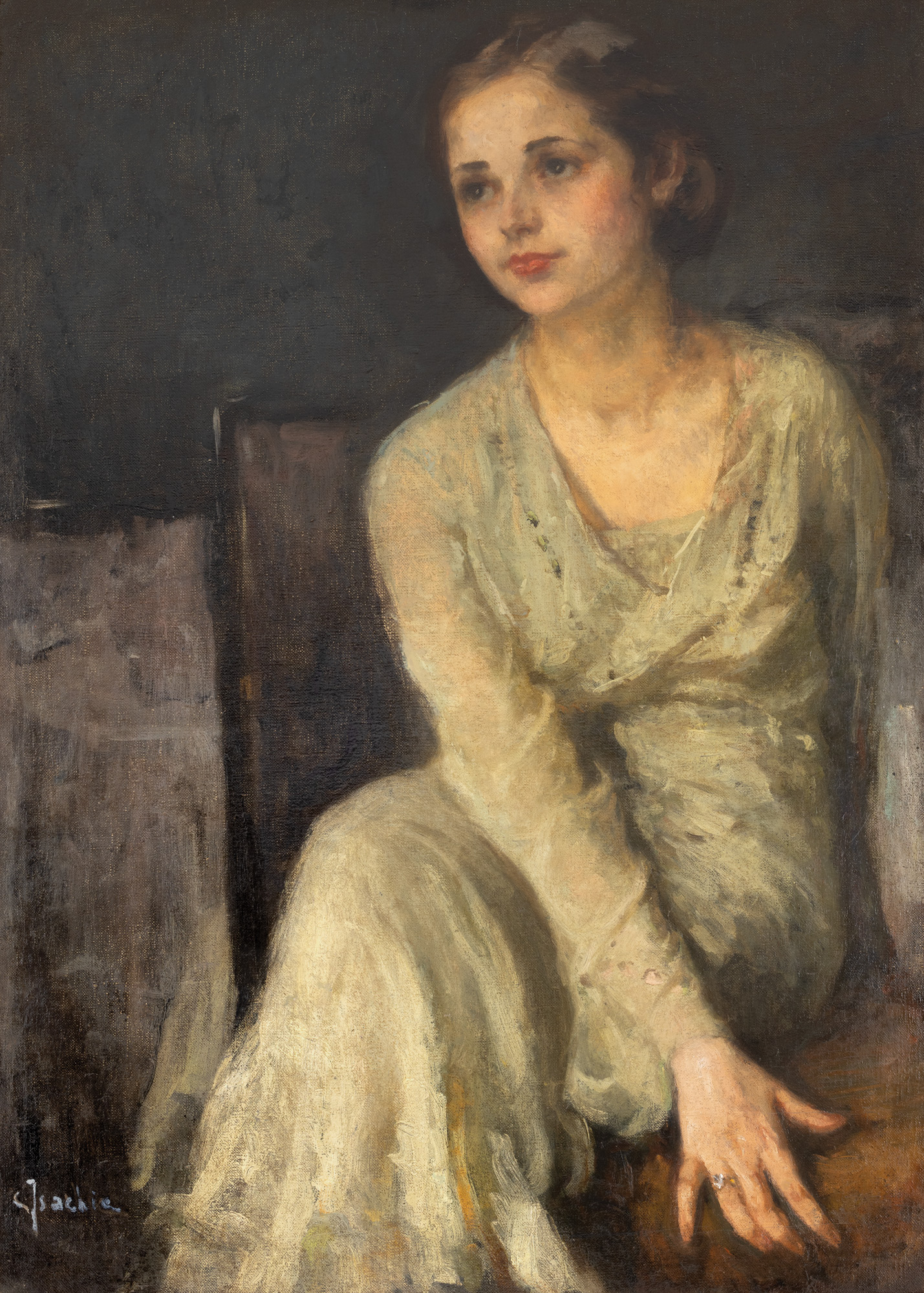 De la portretul artistocratic la portretul monden, istoria artei abundă de reprezentări cât mai felurite ale chipului uman. Intervine, în mod inevitabil, componenta sociologică a portretisticii, pe care pictorii au încercat, de-a lungul vremii, să o deslușească raportându-se la propriile contexte în care își desfășurau creația. Nici Constantin Isachie Popescu nu a ignorat acest gen pictural, ba chiar a excelat în portretistică. Va renunța la avocatură, pe care o practica, pesemne, fără prea mare tăgadă și își va concentra întreaga atenție asupra artei. Studiile de specialitate vor fi atent supravegheate de G.D. Mirea, iar legătura acestuia cu maestrul său vor depăși granițele școlii de Belle Arte; Constantin Isachie Popescu căsătorindu-se cu nepoata acestuia, Letiția Mirea. Tânărul va urma și cursurile academiilor italiene, unde va perfecționa arta portretului, dar va pătrunde și în universul cultural al Franței, unde expune, în anul 1923, un portret în cadrul Salon des Artistes Francais. Participările sale expoziționale din anii ’20 sunt reprezentative prin tematica abordată: portretul. Cel mai adesea identificăm personaje feminine în creația sa: Sophie Cihoschi, Henriette Cihoschi Veron, Eleonora Botez Hagianoff, Irina Valasoglu Rădulescu, Tutu Georgescu, Sonia Cluceru. Portretul e abordat aproape în mărime naturală, doamnele societății înalte bucureștene, și nu numai, bucurându-se de pânze ce depășeau 100, 150 sau chiar 200 cm.